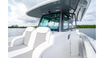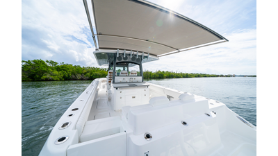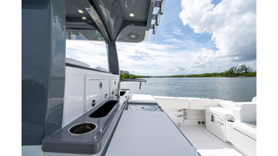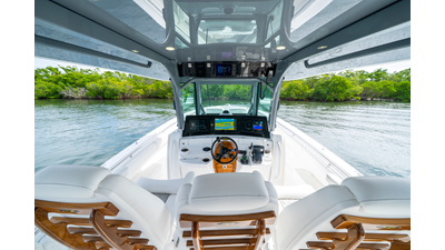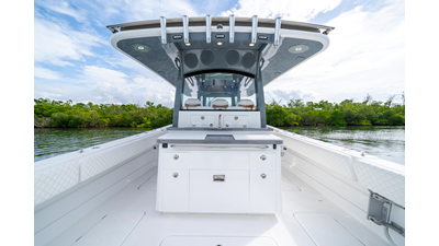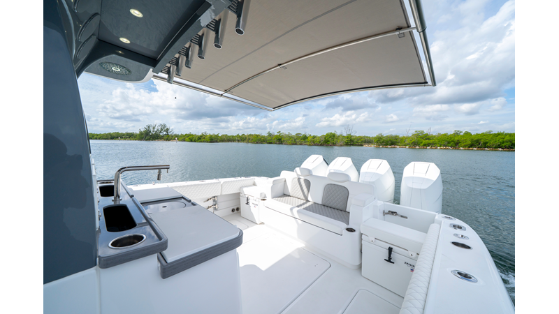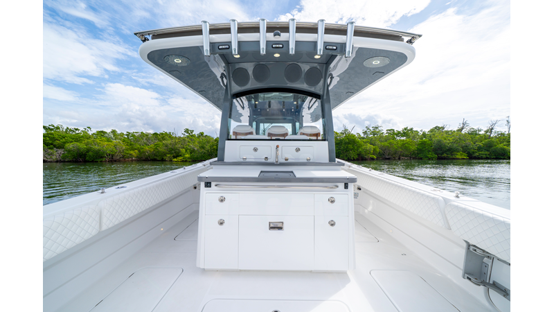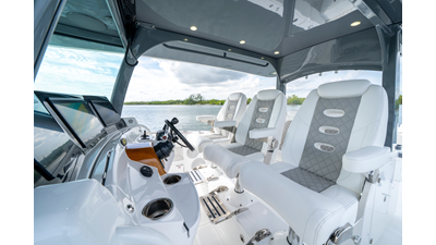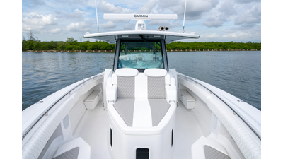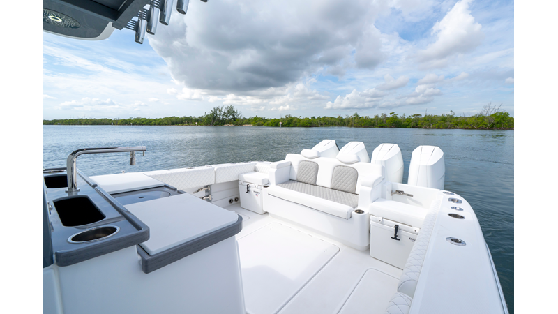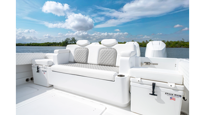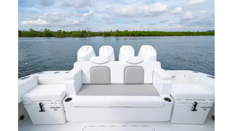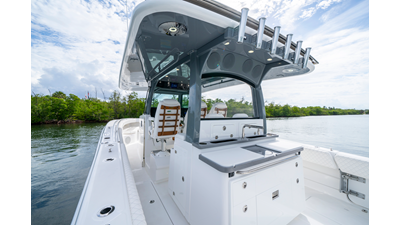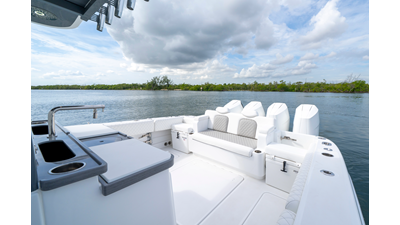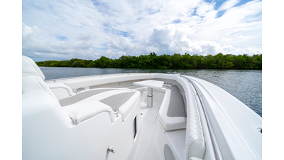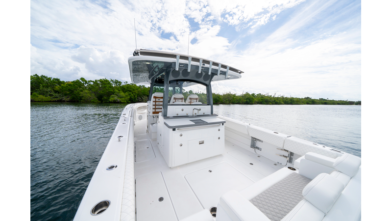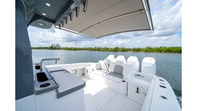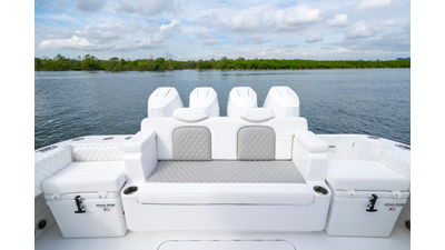 Quad Mercury V10 400 Seakeeper Model DC3 Underwater Lighting Bow Thruster 12v Helm Air Conditioning Auto Pilot Joy Stick Control Garmin AIS Communication System Garmin XM Weather Garmin Side Scan Sonar Stereo Upgrade Underwater Lighting Bentley or Diamond Pattern Stitching on Seating Inserts Transom Cooler Seats, 28 Qt, Port and Starboard with Cushions and a Full Length with 20 Gallon Baitwell and Removeable Seat Summer Kitchen with Removable grill Outriggers Rod Holders - Forward Gunwale (12) Rod Holders - Transom Aft (4 extra for a total of 7) Loaded with additional upgrades