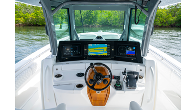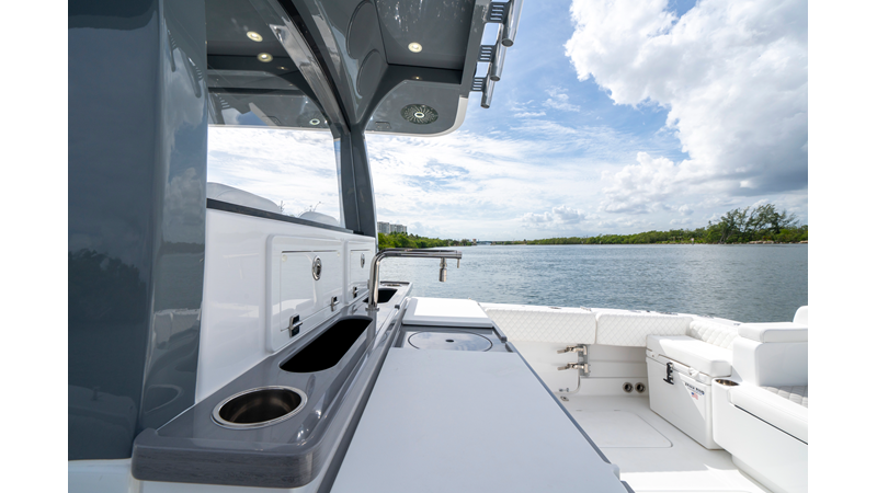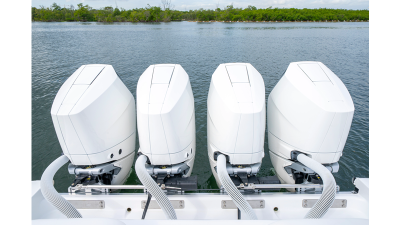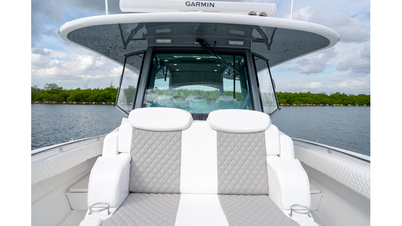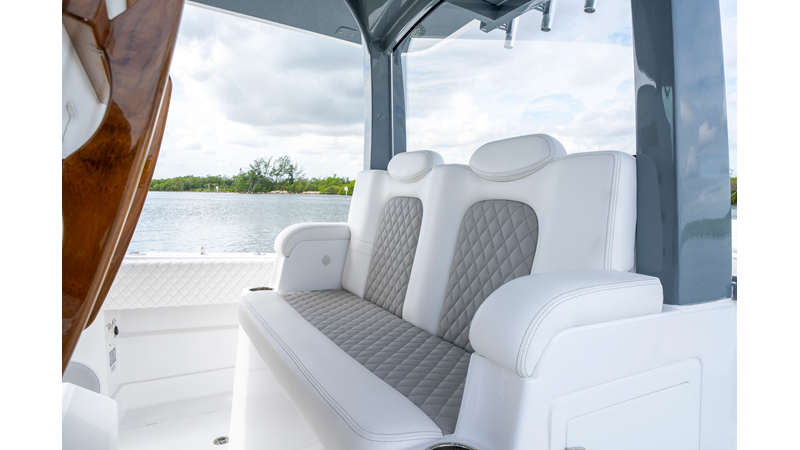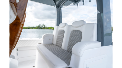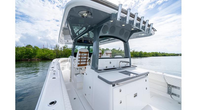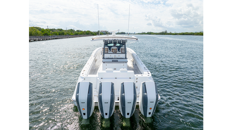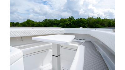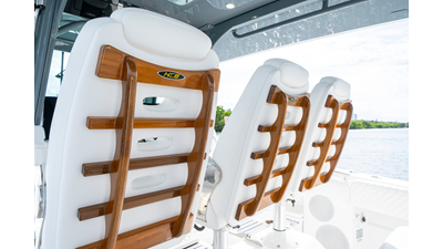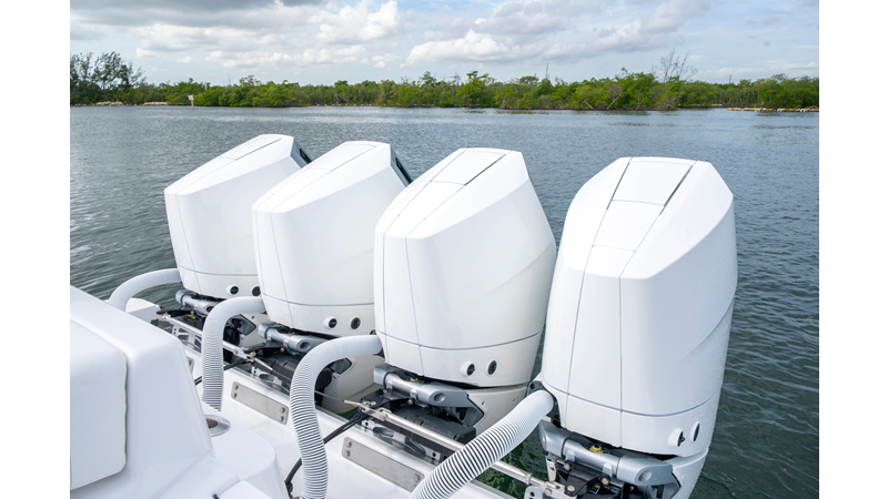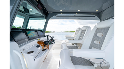 Quad Mercury V10 400 Seakeeper Model DC3 Underwater Lighting Bow Thruster 12v Helm Air Conditioning Auto Pilot Joy Stick Control Garmin AIS Communication System Garmin XM Weather Garmin Side Scan Sonar Stereo Upgrade Underwater Lighting Bentley or Diamond Pattern Stitching on Seating Inserts Transom Cooler Seats, 28 Qt, Port and Starboard with Cushions and a Full Length with 20 Gallon Baitwell and Removeable Seat Summer Kitchen with Removable grill Outriggers Rod Holders - Forward Gunwale (12) Rod Holders - Transom Aft (4 extra for a total of 7) Loaded with additional upgrades