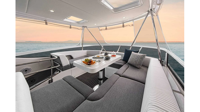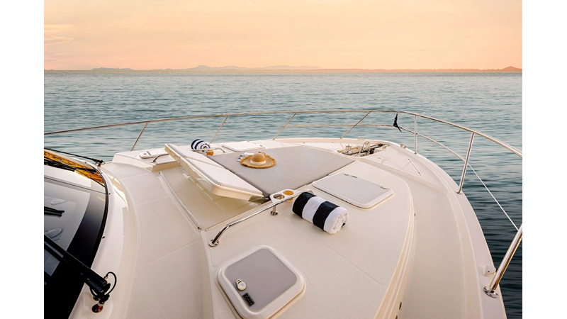 Stretch out and relax on the foredeck sun pad; or the daybed on the alfresco deck; or perhaps the flybridge daybed will be your favourite.