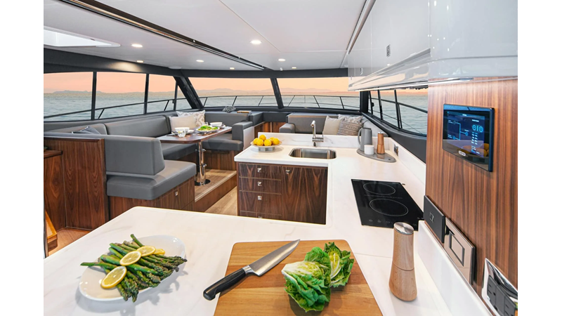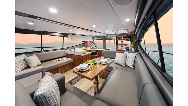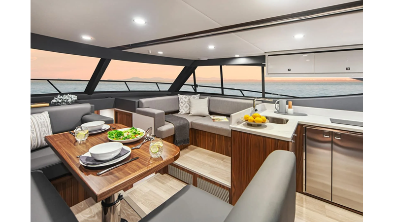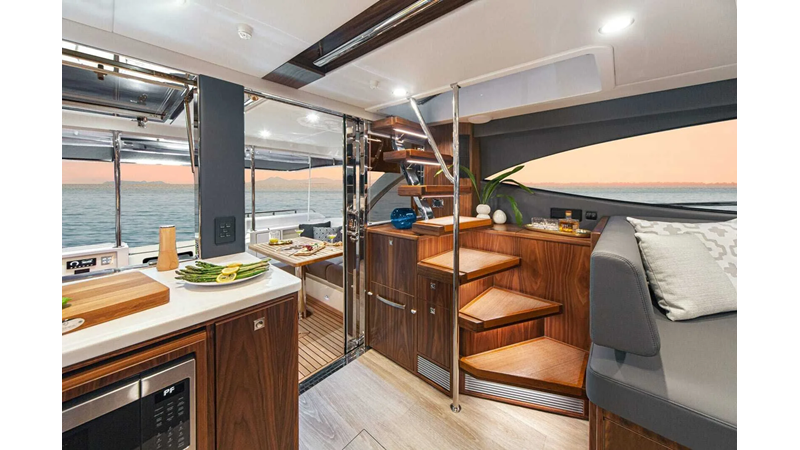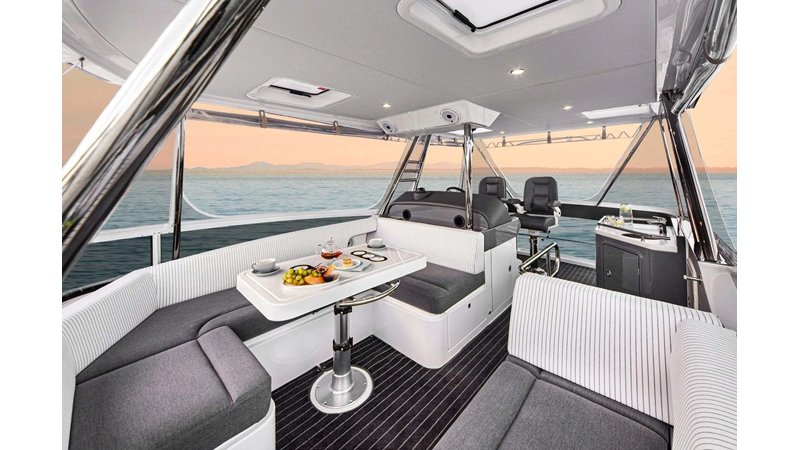The new 46 Sports Motor Yacht offers a wide, open cockpit designed for water sports action. Three entertaining and dining options. An aft gourmet galley and spacious saloon.