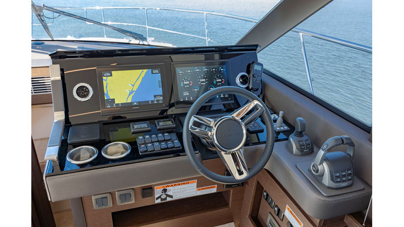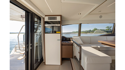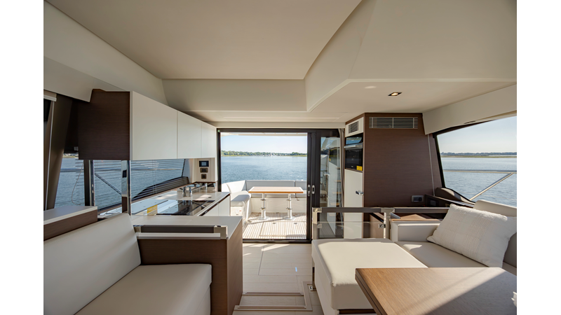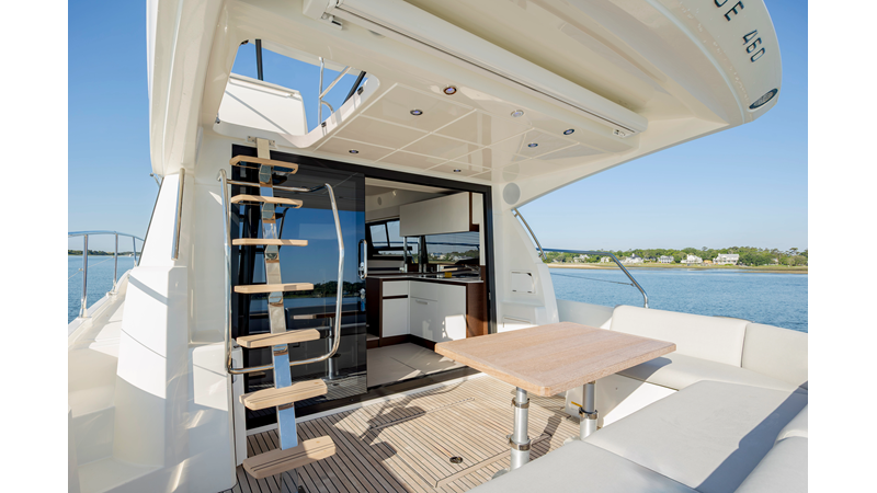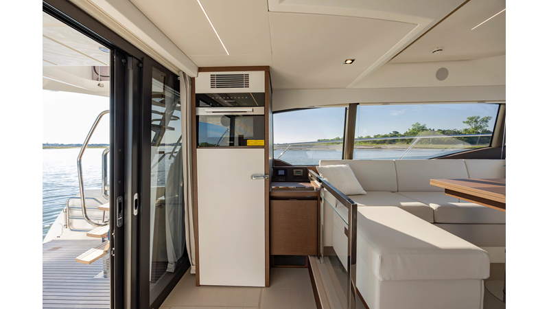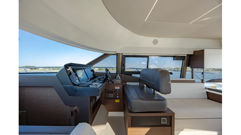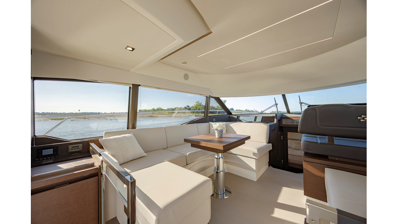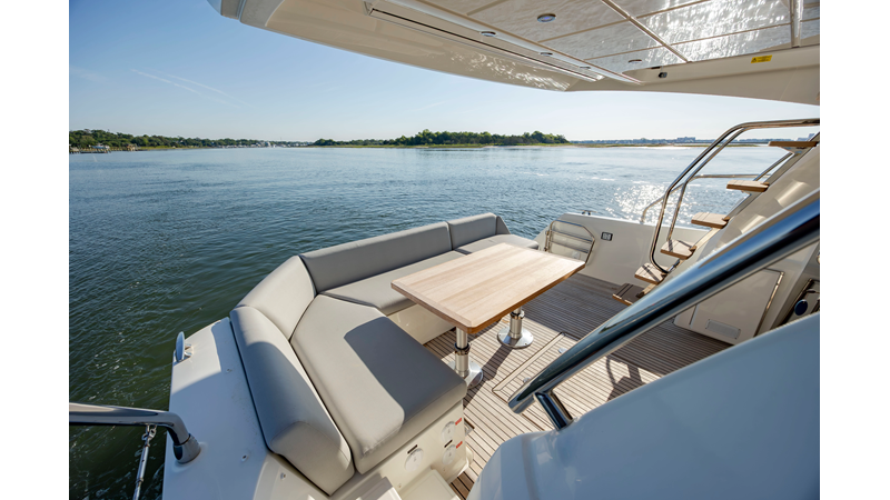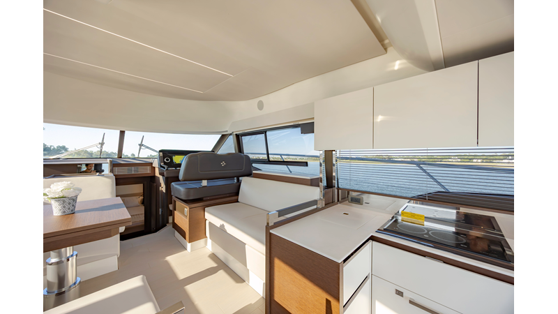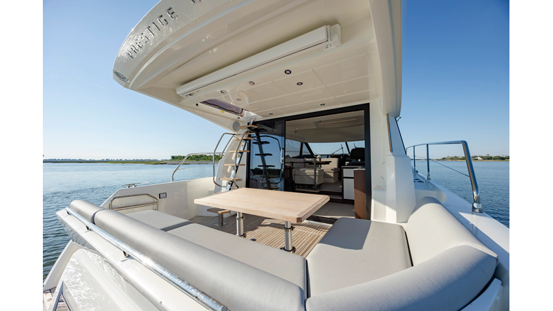 On board, everything has been optimized to offer unequalled space and comfort. Combining the design talents of Garroni Design and JP Concepts, this Flybridge meets all the latest requirements and boasts all the benefits of a true Prestige Yacht.