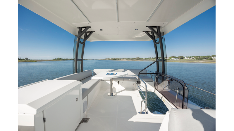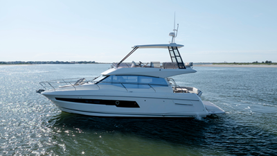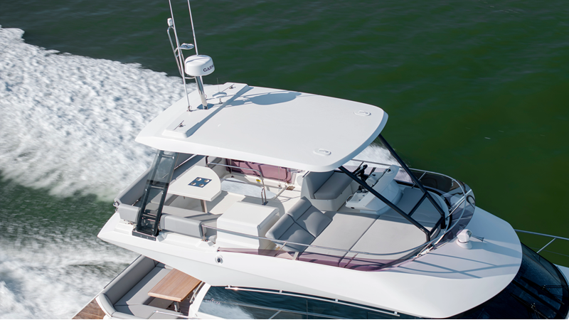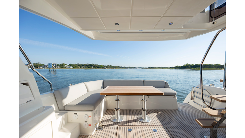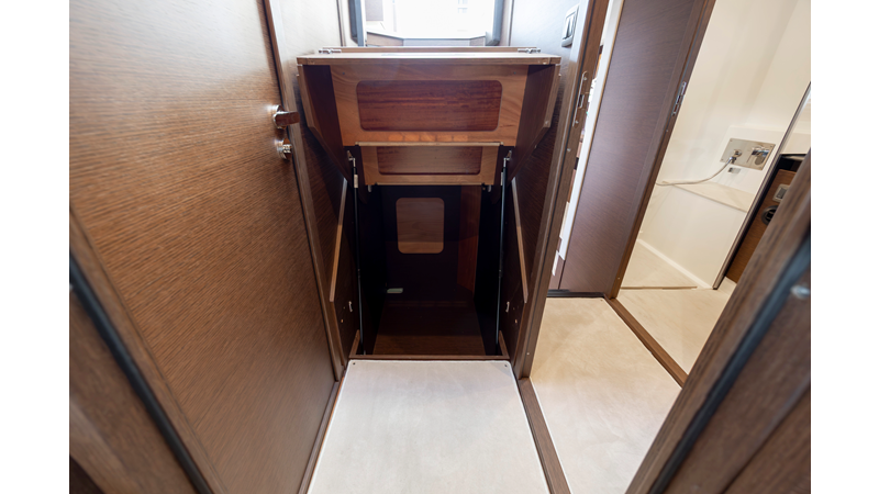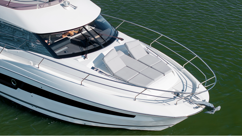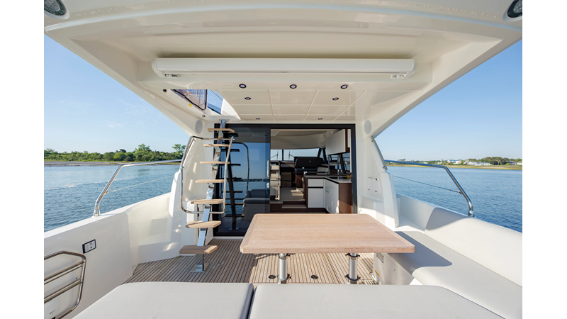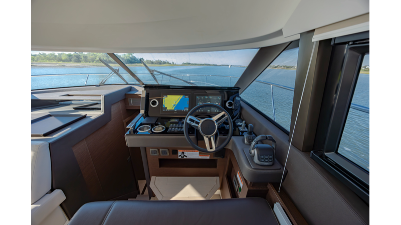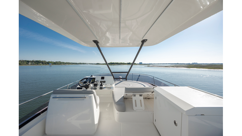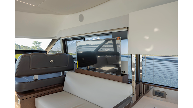On board, everything has been optimized to offer unequalled space and comfort. Combining the design talents of Garroni Design and JP Concepts, this Flybridge meets all the latest requirements and boasts all the benefits of a true Prestige Yacht.