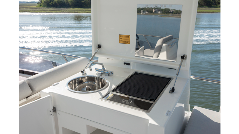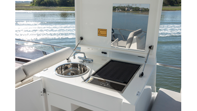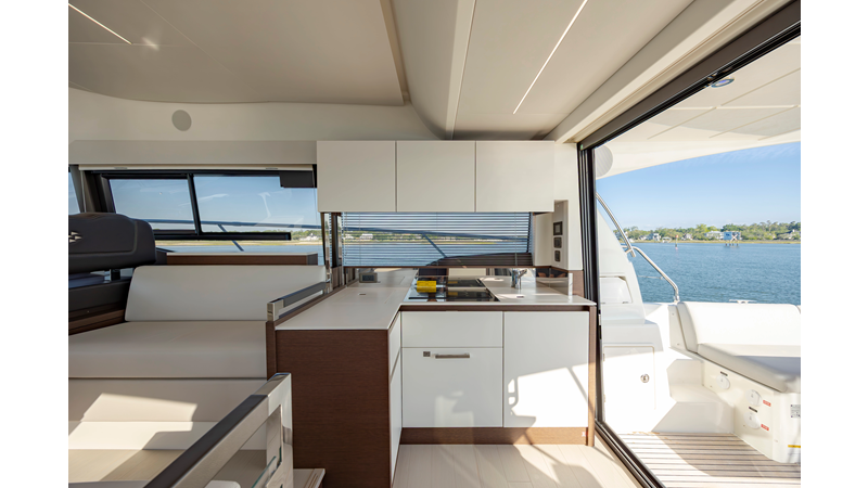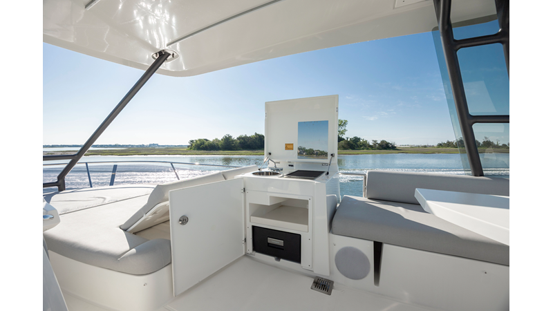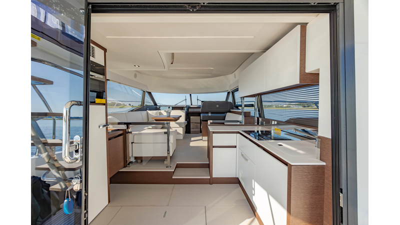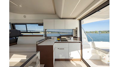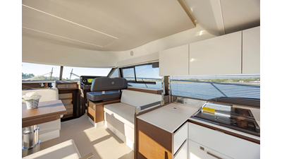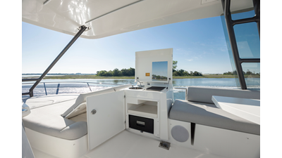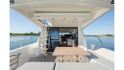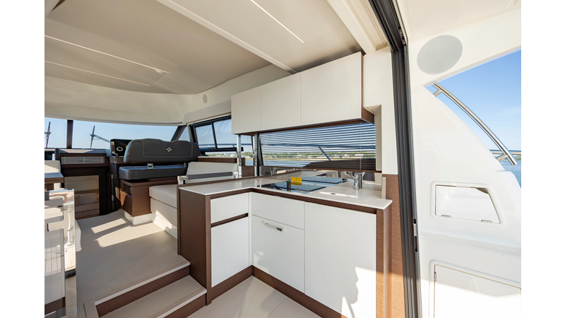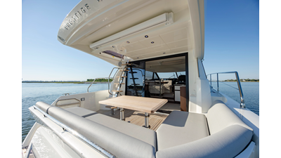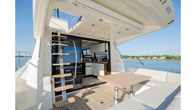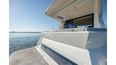 The contemporary layout of the exterior galley located to the aft opens onto an immense swim platform. The very comfortable Flybridge is an invitation to complete relaxation.