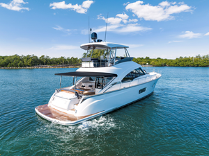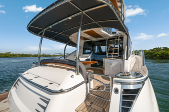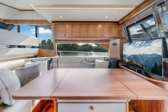 One-level living from the galley aft to the cockpit. An inspired lower command helm with dedicated guest seating.