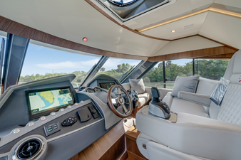 Resin-infused composite construction, double vinyl-ester outer skin, watertight, stepped collision bulkhead and independent foam-filled hull compartments. CZone digital switching system, Glass Cockpit navigation and Volvo Penta Inboard Performance System (IPS) with joystick docking.