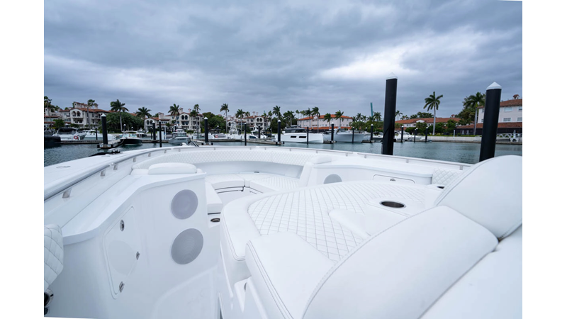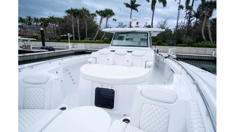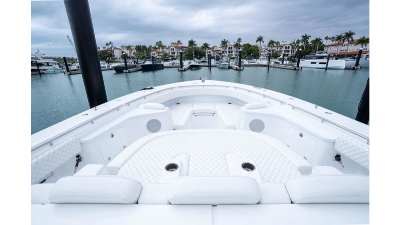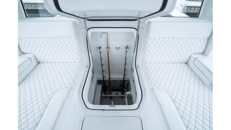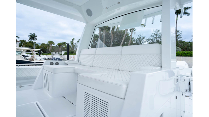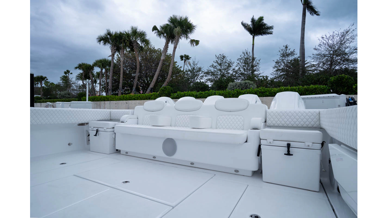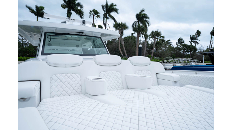 - Cockpit Upholstery - Cool Feel White, Black Rod Holder Upgrade - Additional 12 - (8) Forward Gunwale and (4) Aft Transom