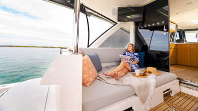 The 585 is an extremely spacious addition to the Riviera SUV collection; an expansive, single-level alfresco entertainer with even more accommodation and brilliant features. Experience new levels of luxury living, entertaining and relaxing all with that signature SUV spirit of adventure, proven blue water performance and water sports action. Enjoy two superb dining options – on the alfresco deck and in the spacious saloon – as well as a third U-shaped, 8-seat entertaining area on the foredeck. Your alfresco deck effectively increases the saloon-level living area by a third. Slide open the tinted glass door, then open out the large tinted glass awning window; now the alfresco deck connects and flows through to the saloon and galley, effectively making one grand-living and entertaining space. Pamper your family and friends with three luxurious staterooms including a full-beam master, three bathrooms and a crew cabin or utility room with dedicated laundry. Relish the Riviera attention to detail, handcrafted luxury and easy-to-use technology that makes boating easier and even more enjoyable; for a weekend escape or extended cruise.