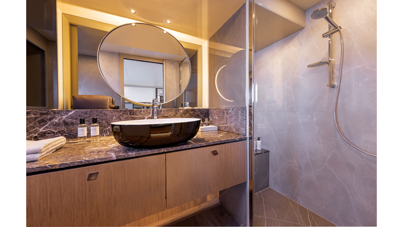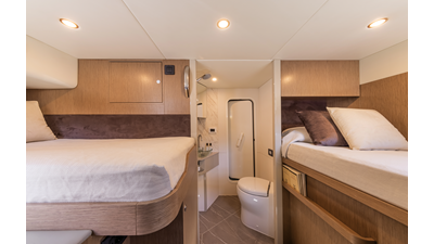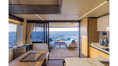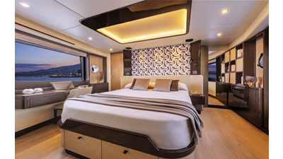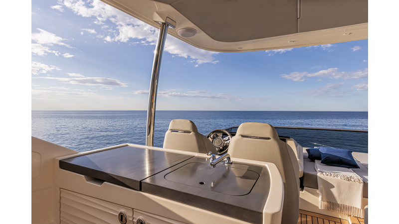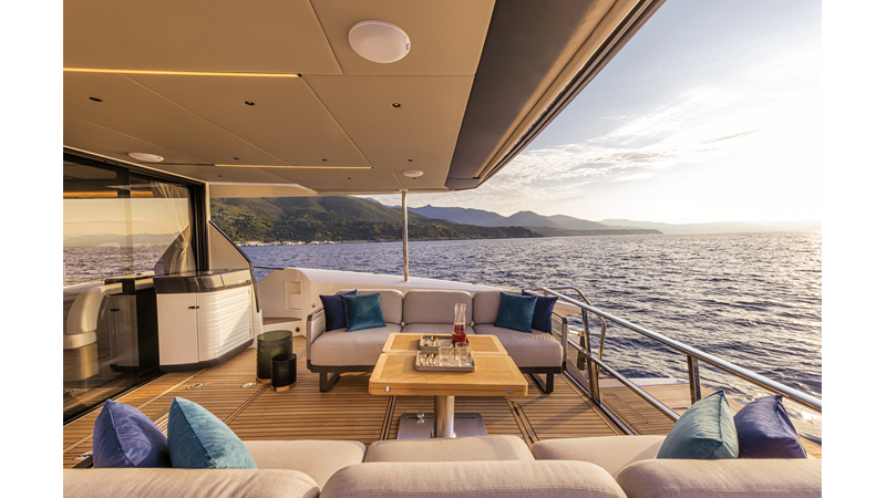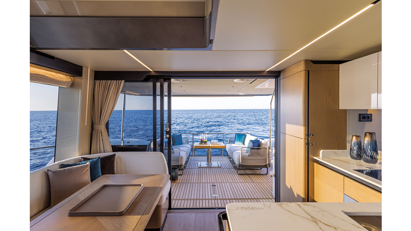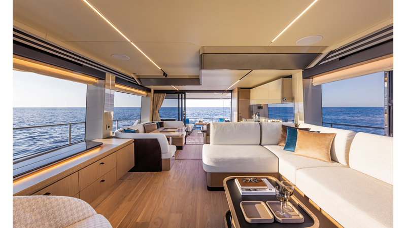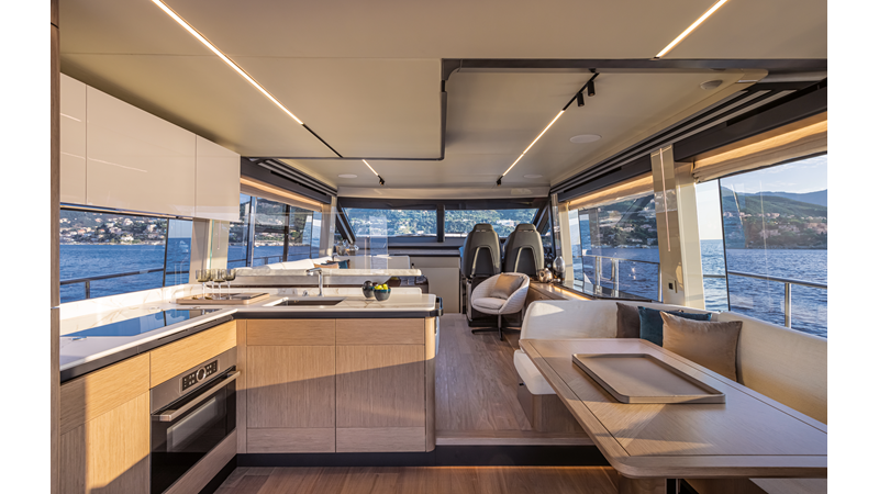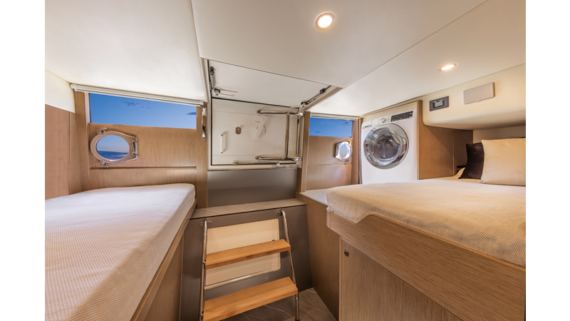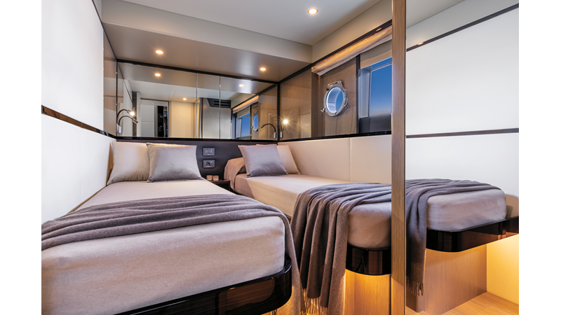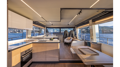The 60 FLY, known as the Absolute Prisma, represents a new generation of flybridge yachts. With transparent glazed balustrades, large deck windows, and modular cockpit layouts, she brings a strong connection to the sea and customizable living space. Two side stairways lead to a generously sized swim platform, and a separate corridor gives crew discreet access. Below deck, the full-beam owner’s cabin forward, a VIP cabin, and a third twin cabin offer comfort without compromise. Powered by twin Volvo IPS drives, the 60 FLY balances innovation, performance, and refined design.