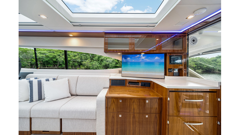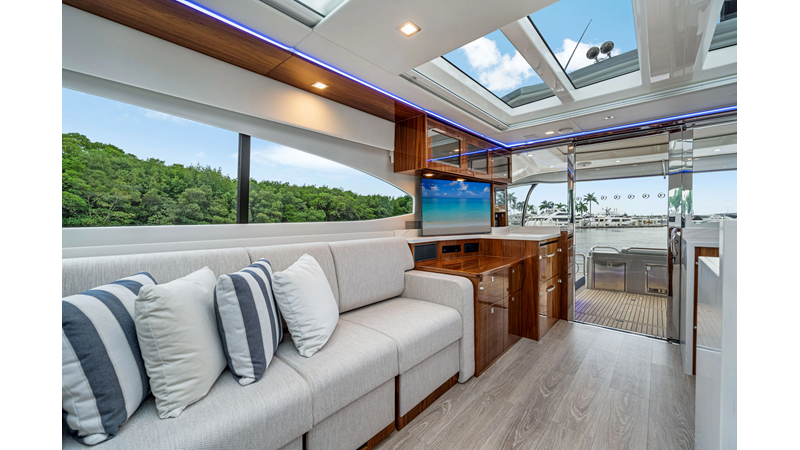 Introducing the Platinum Edition Riviera 6000 Sport Yacht! Featuring a long list of cosmetic and equipment upgrades, this is a fresh new take on a proven world-beater. We have this new, custom-built 6000 Sport Yacht. We spec'd her with the preferred lower lounge/three cabin/three head layout, high gloss walnut interior joinerwork, and a very long list of factory and custom options we would love to discuss with you.