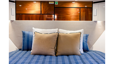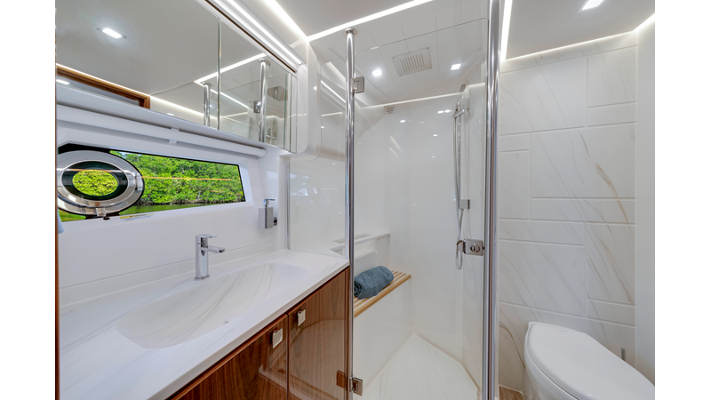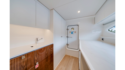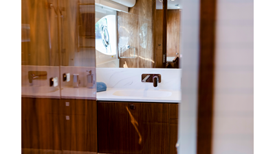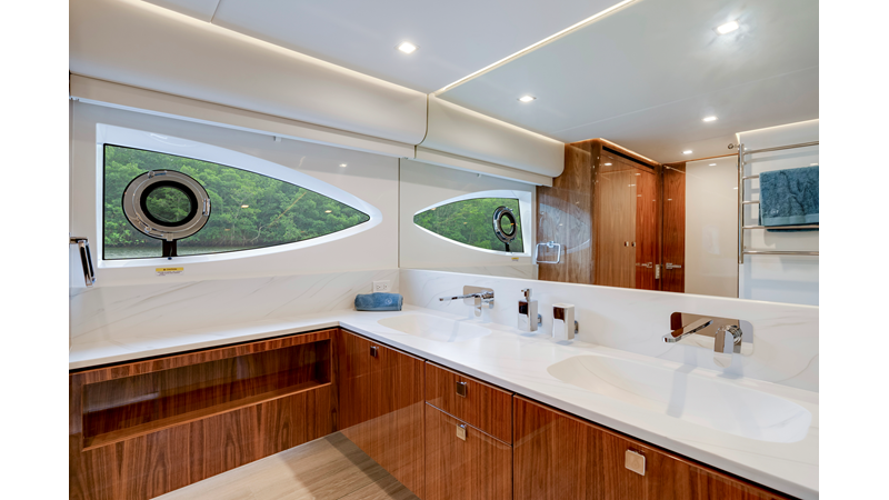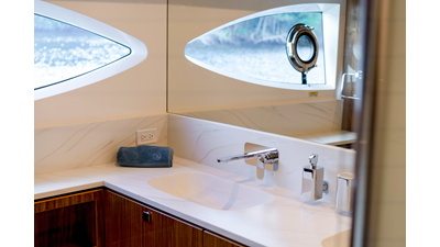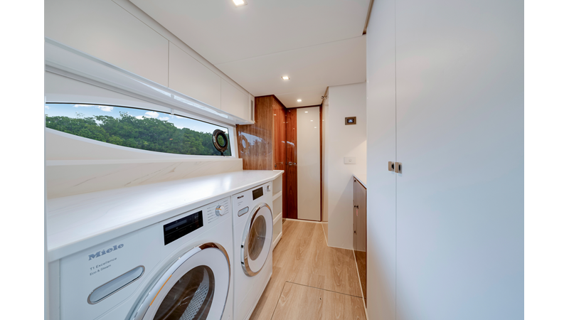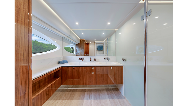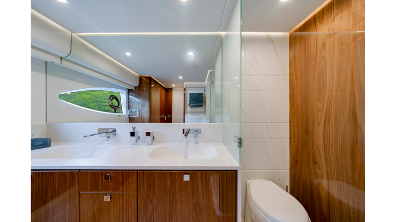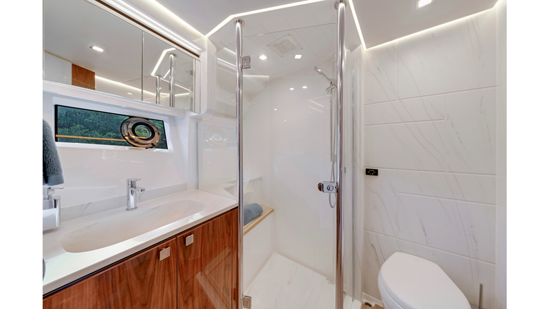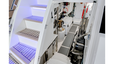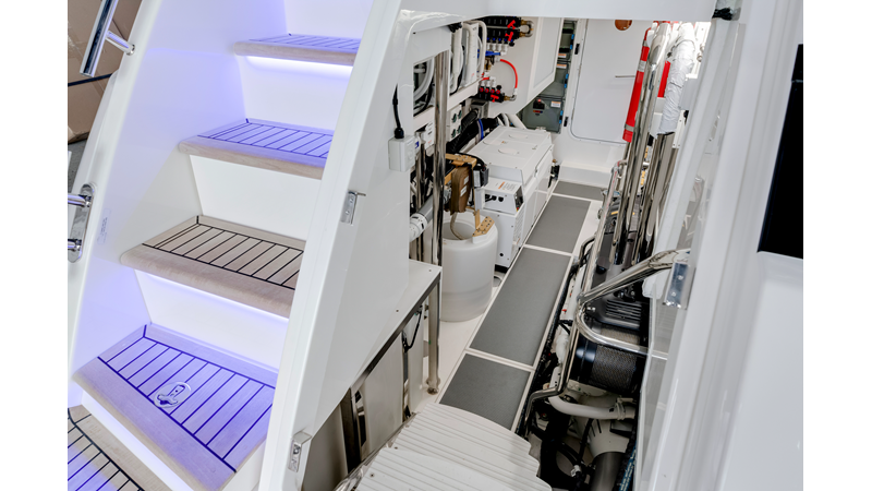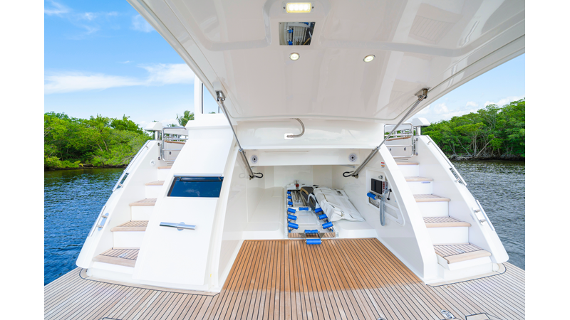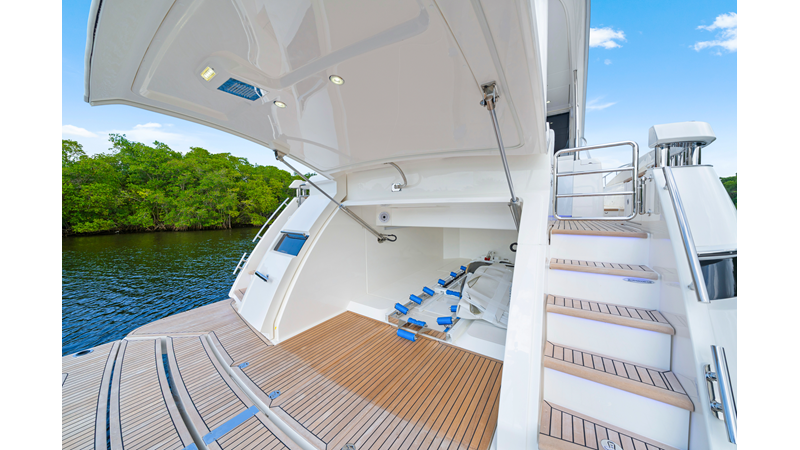 Perfect for a long-range adventure or a weekend away; with a choice of 3 or 4 staterooms and three bathrooms, a crew cabin or utility laundry, a full-height walk-through engine room and an impressive tender garage devoted to water sports.