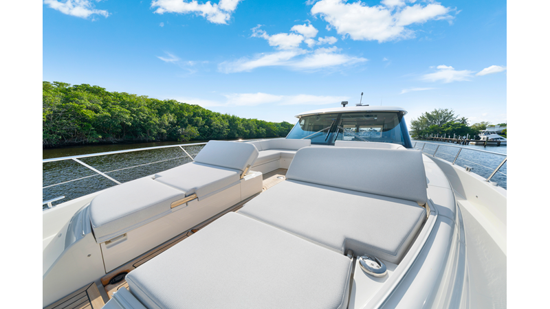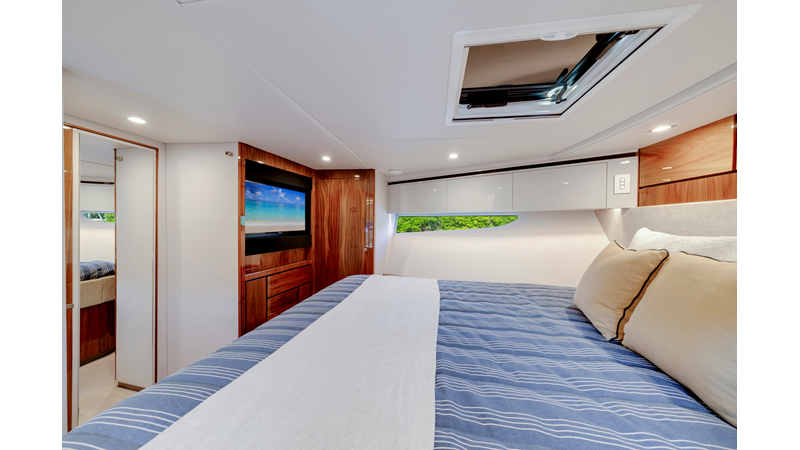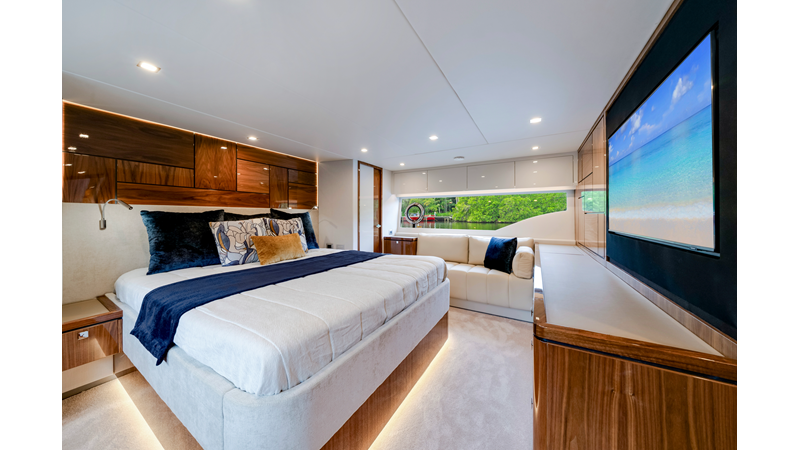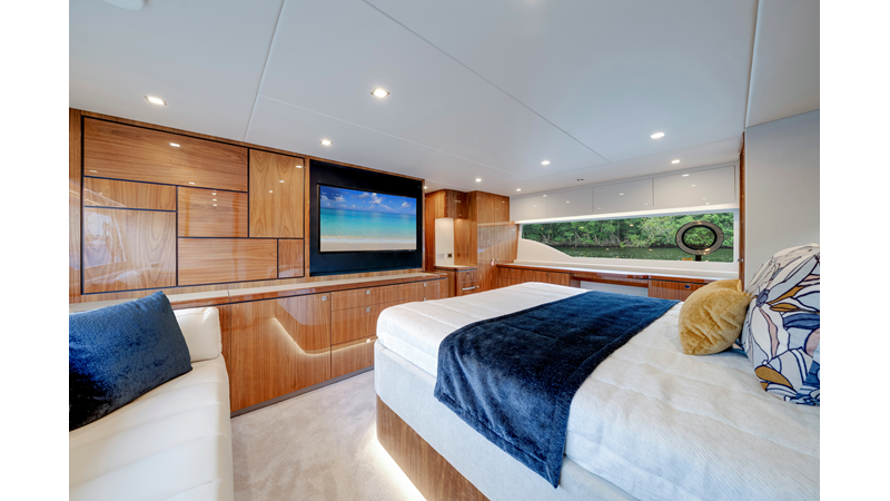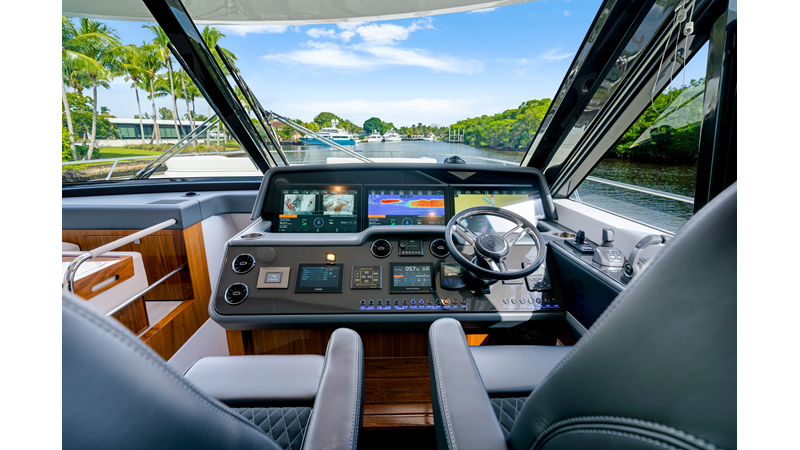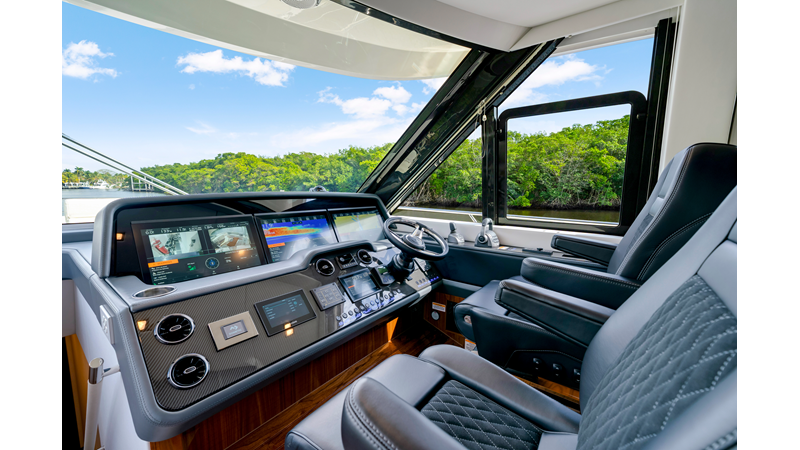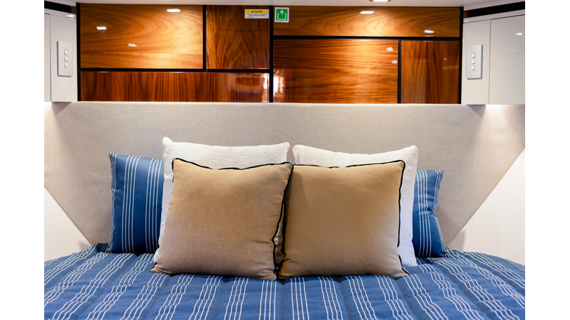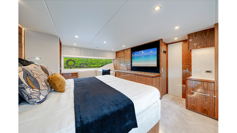 Riviera’s 6800 Sport Yacht has so many separate entertaining areas that family groups, friends and couples can all find their own space to enjoy the world around them. Enjoy the sunshine on the forward deck, or entertain on the all-weather aft deck with a sunroof to invite the sunshine or stars. Relax on one of three lounges in the saloon, also with the luxury of a sunroof.