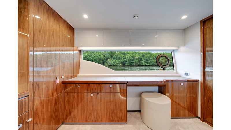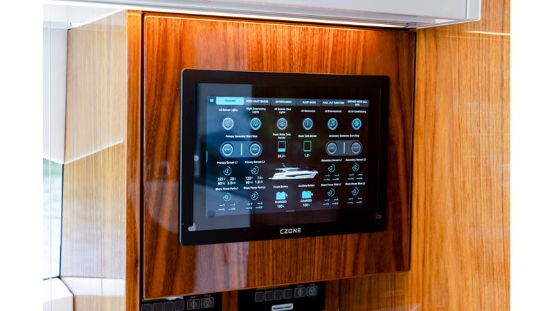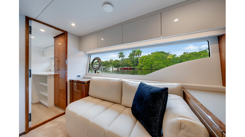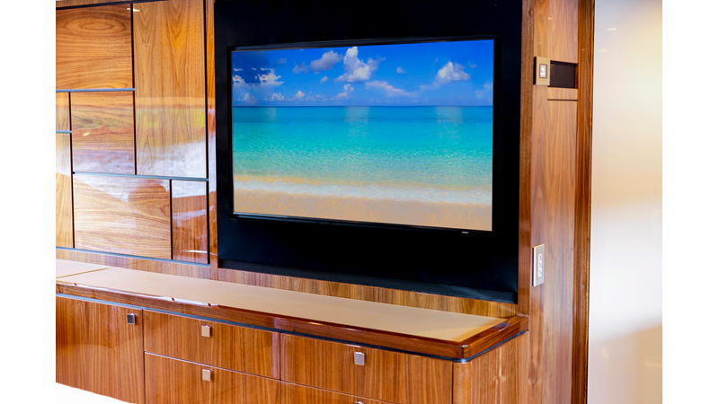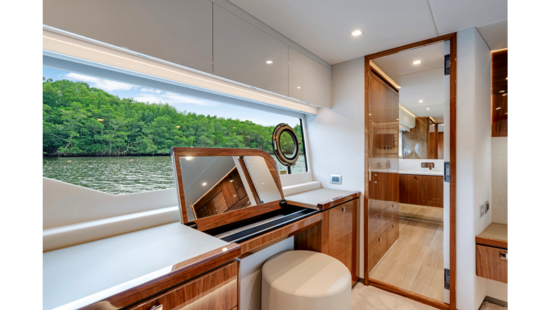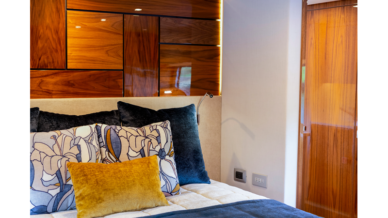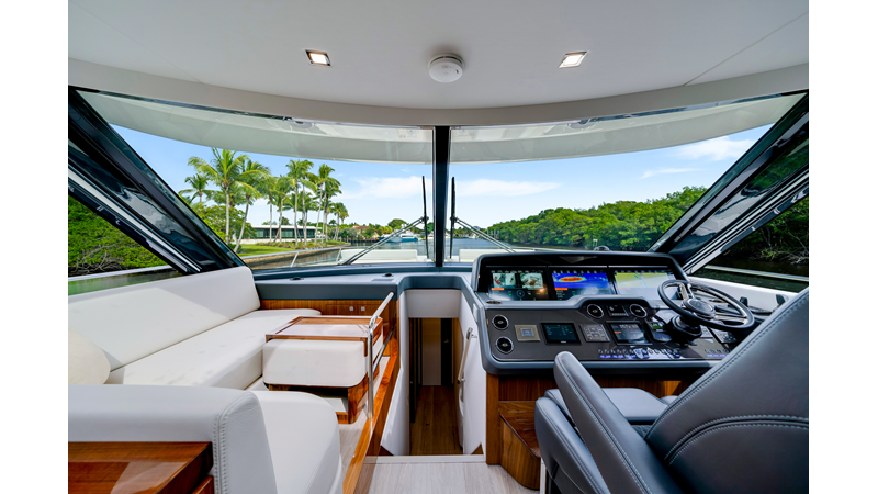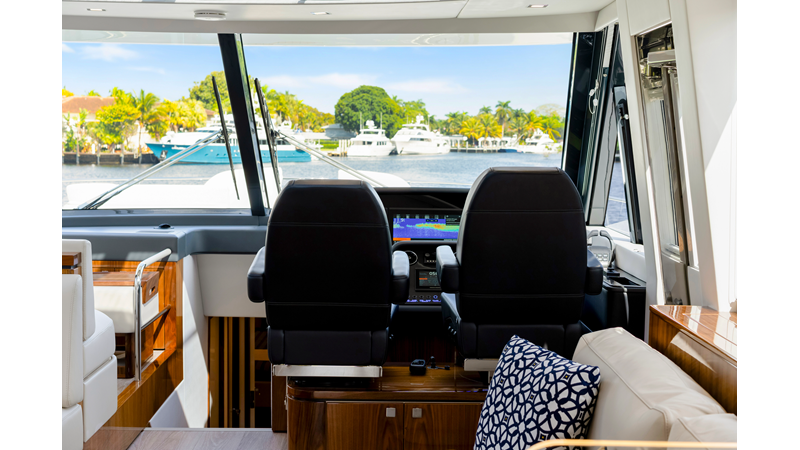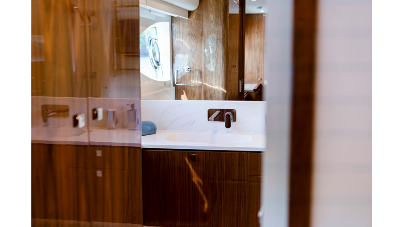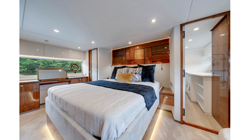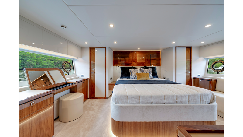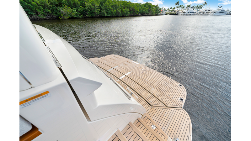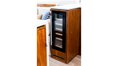 Slide open the saloon door. Then lower the electric galley window with the push of a button. Now the aft deck flows into the saloon creating one grand living and entertaining space with two designer dining areas.
