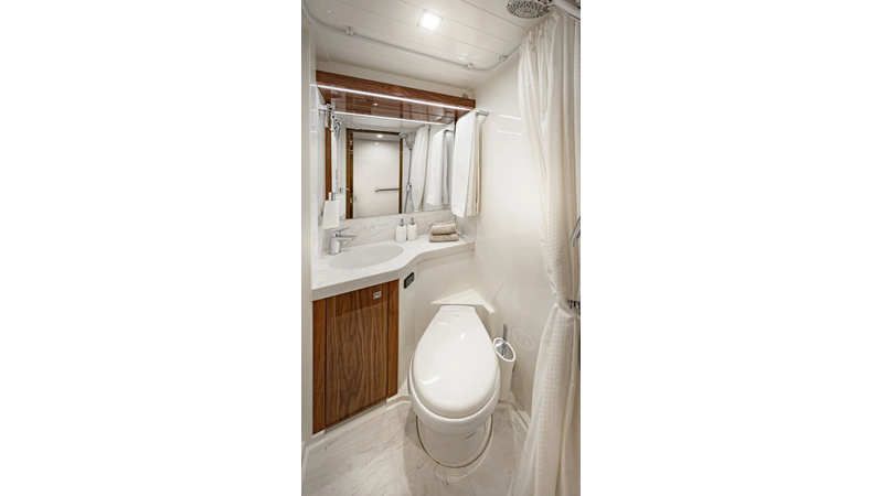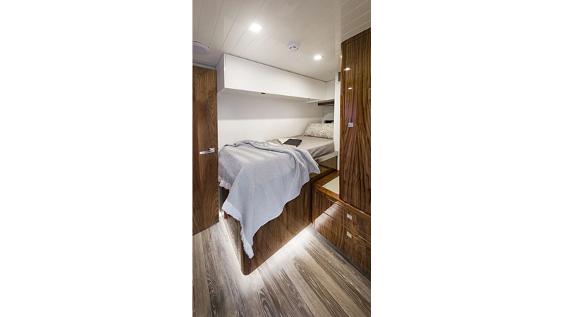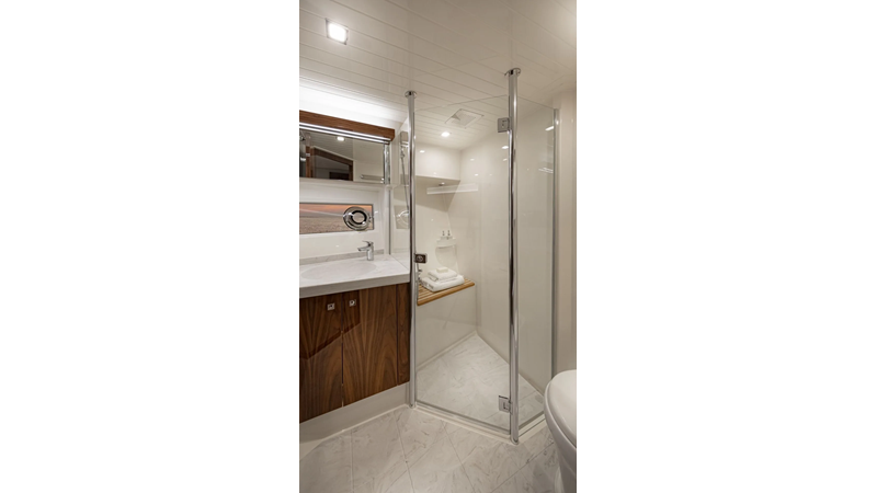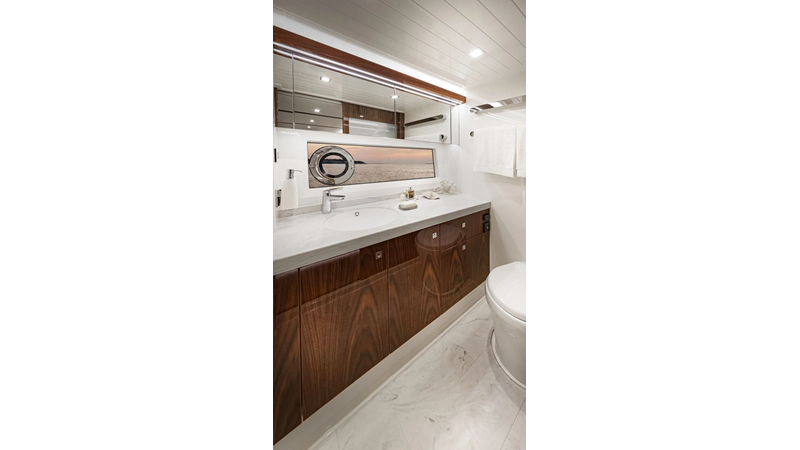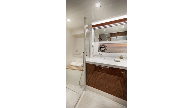 Features fabulous foredeck entertainment area and four-sided enclosed flybridge with internal stairs. Enjoy the luxury of an optional crew cabin or utility space and the surety of wide and deep side decks. Your choice of three or four magnificent staterooms and four bathroom designs.