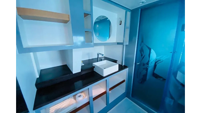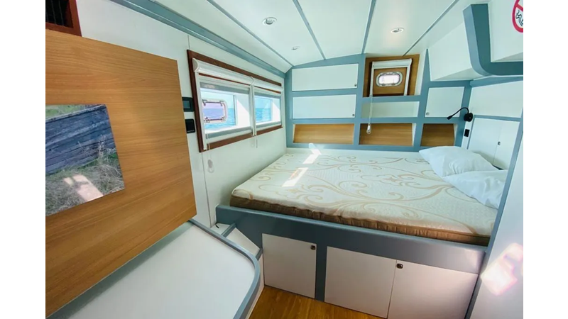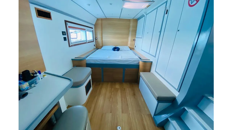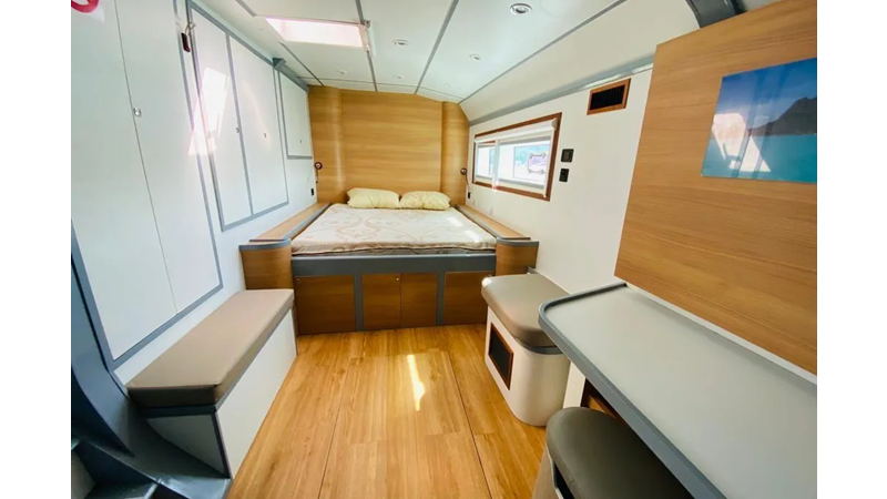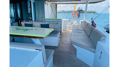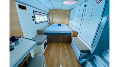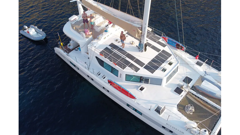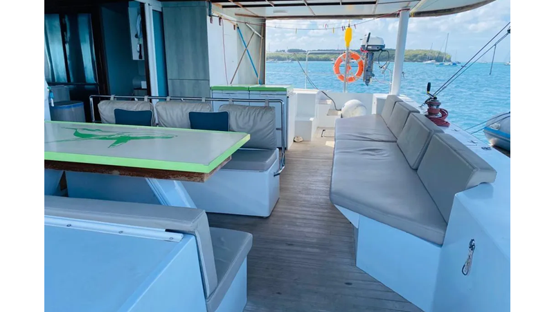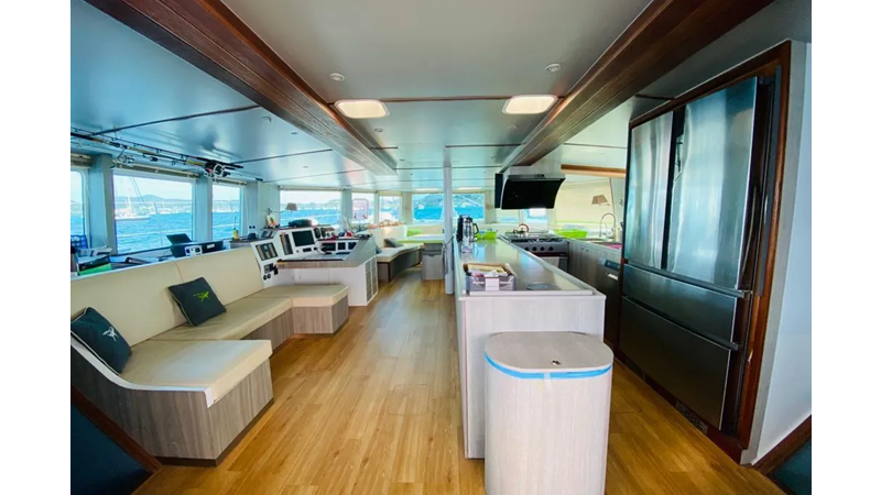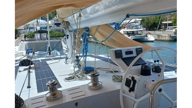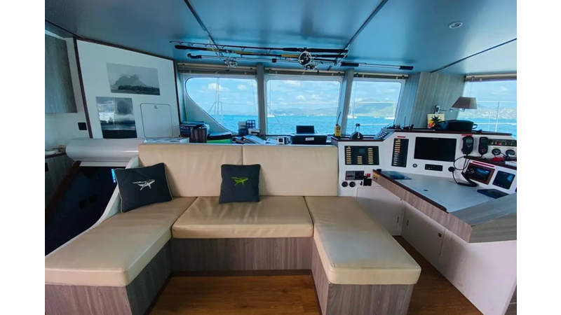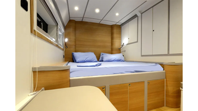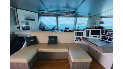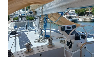 19.60m, 4+2 cabins, 4 bathrooms. Twin 140hp engines, 20KVA generator, 25m² solar panels, watermaker 240L/h, diving compressor, hydraulic tenderlift 600kg. Fully equipped for world cruising.