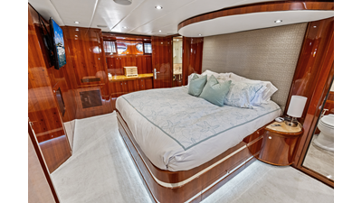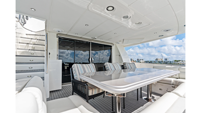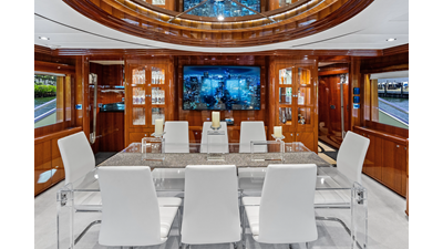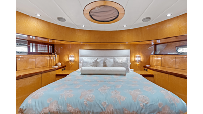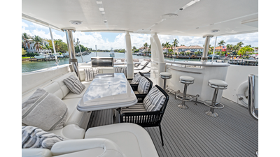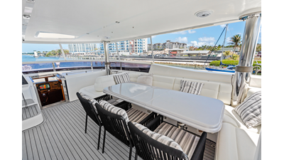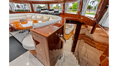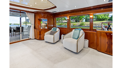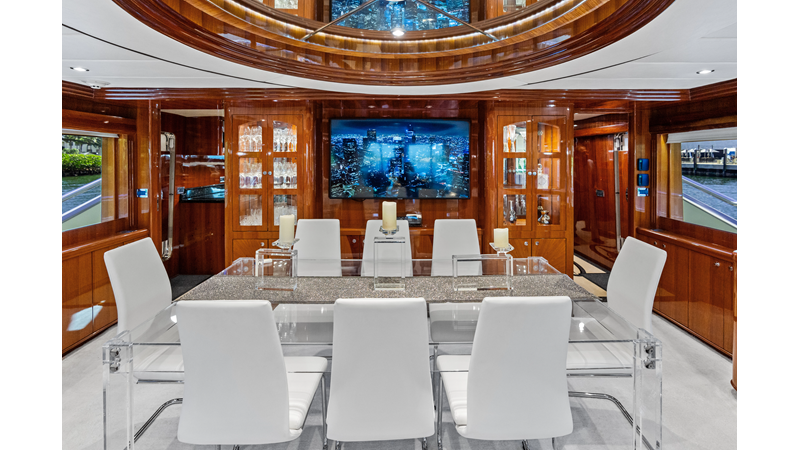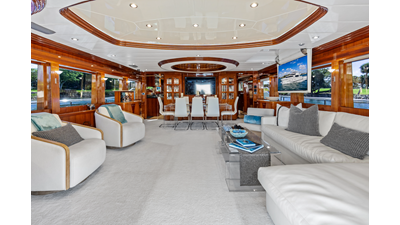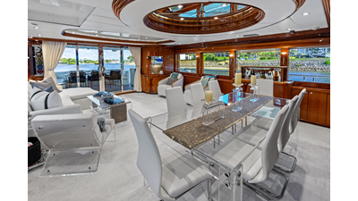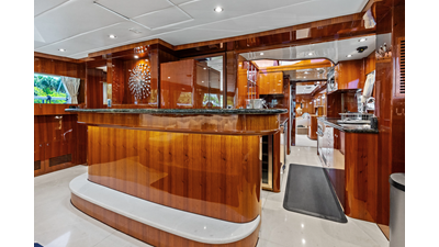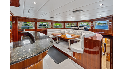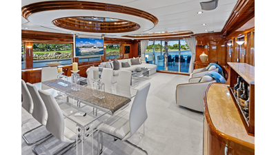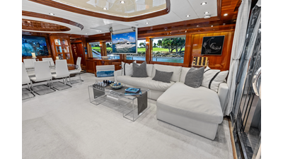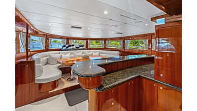 As you walk through the electric stainless doors, the interior volume truly stands out, thanks to her 23'6" beam. She has a substantially wider beam than most yachts in her class—just a few inches shy of a 112' Westport—which sets this 87 Johnson apart from others in this size range.