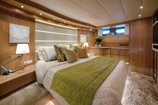 Accommodation is arranged for up to 10 guests in 5 well-appointed cabins, including a spacious full-beam master suite and four additional guest staterooms, all designed with a refined and welcoming atmosphere.