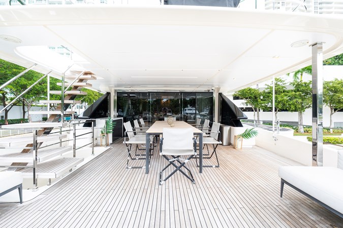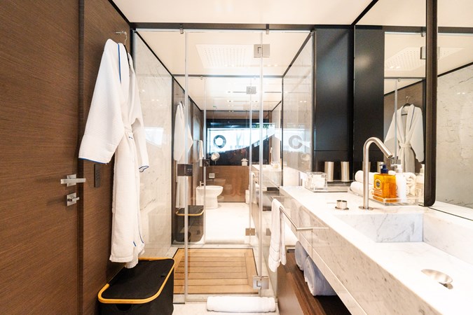AMITY is a 2018 Custom Line Navetta 33 built by Custom Line, part of the Ferretti Group, offering the proven long-range cruising platform and interior volume that have made the Navetta series a mainstay in the 30–35 meter market. Designed with transatlantic capability and guest comfort in mind, she features a full-beam main deck owner’s suite, four additional guest staterooms below, and multiple outdoor living areas including a generous flybridge and aft beach club. With her displacement hull providing efficient cruising and excellent stability, AMITY presents a compelling opportunity for an owner seeking a well-regarded 33-meter platform with substantial space and capability.
