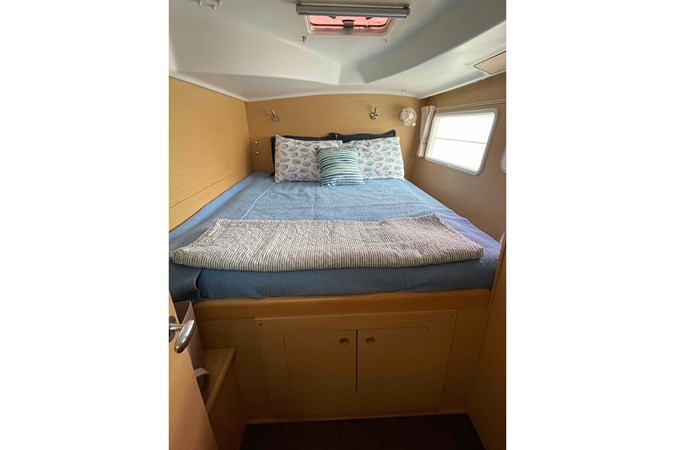 The Lagoon 380 has huge interior volume for a 38 footer. The panoramic salon and the galley connect directly with the cockpit. Seated around the salon table, while at the helm, or relaxing in the cockpit, everyone is part of the activities onboard. The owners version has 3 cabins with queen size berths and 2 heads, one on each side, with the starboard hull entirely dedicated to the owner's suite, including a large fully enclosed shower. There are hanging closets and shelves throughout the cabin areas as well as large fixed panoramic windows in each cabin.