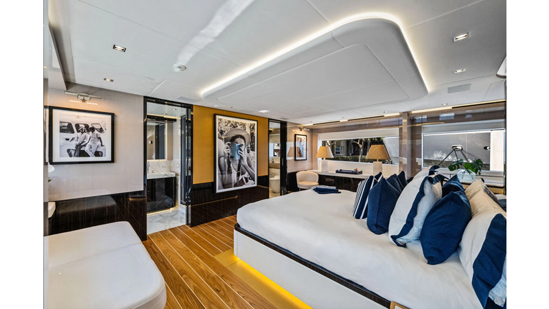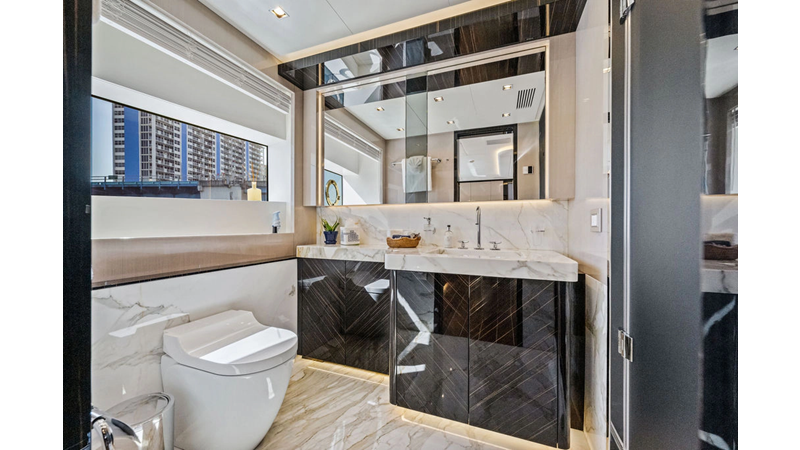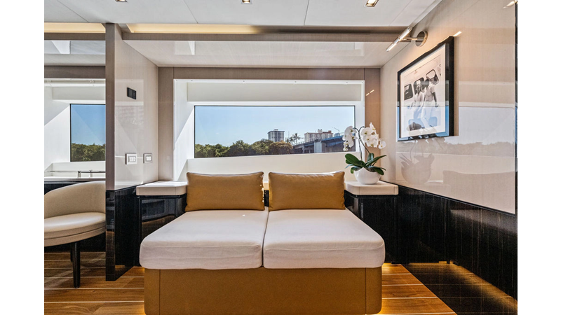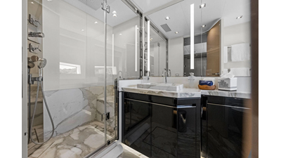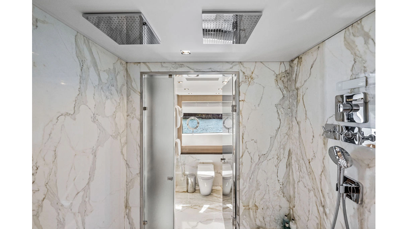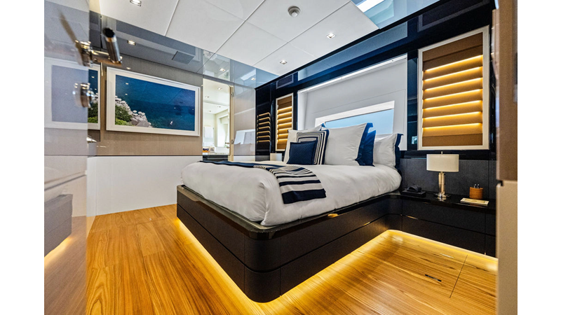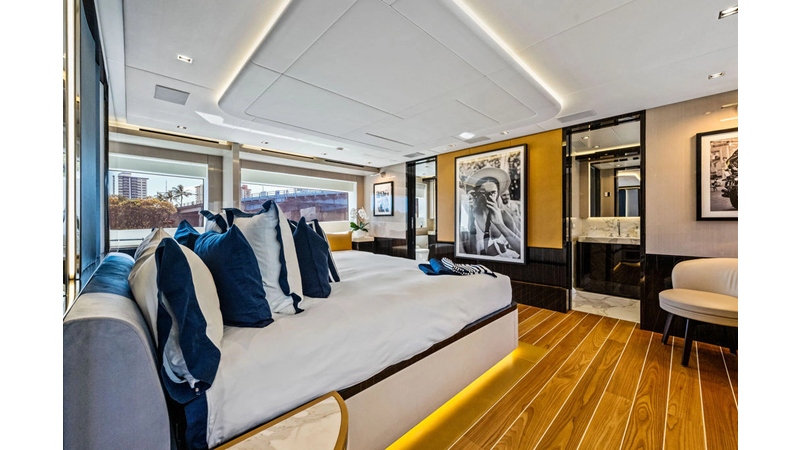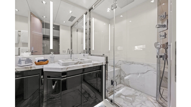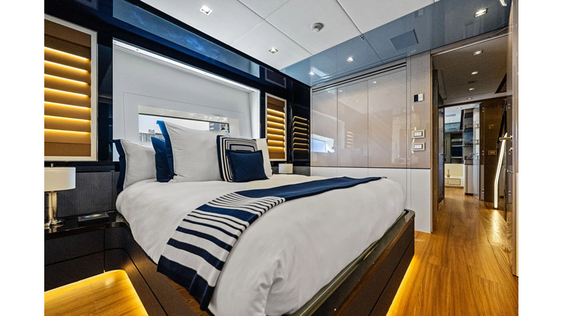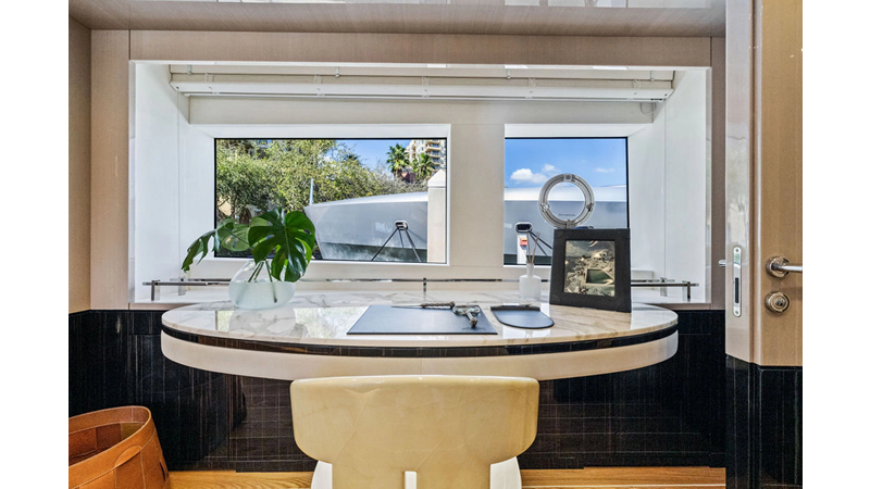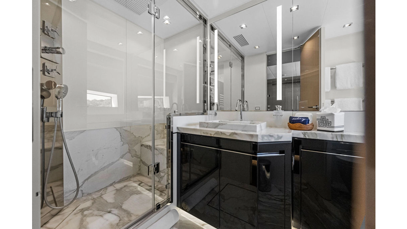 ARTEMIS, the 2021 Mangusta 33 GranSport, is one of the highest optioned 33 GranSports ever delivered. Originally commissioned as DOPAMINE for an experienced owner, she has well over €1m worth of upgrades including the beautiful interior decor by Alberto Mancini with upgraded marble & onyx throughout, upgraded galley, the master cabin that was completely reconfigured with a custom layout, increased ceiling heights both on the main & lower decks, as well as mechanical improvements such as increased sound proofing around the stabilizer systems to decrease noise in the guest accommodations.