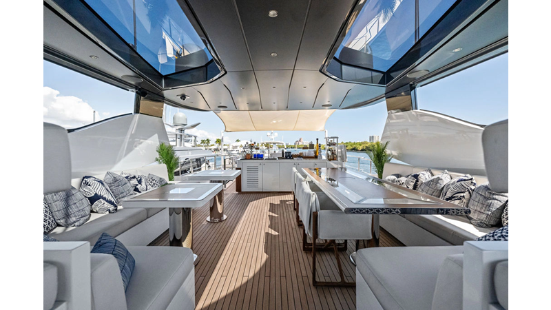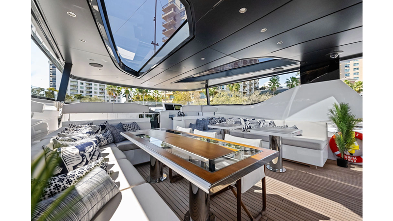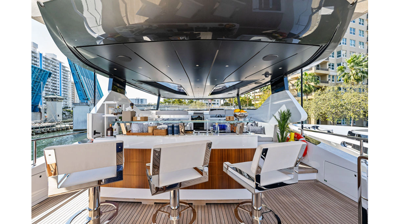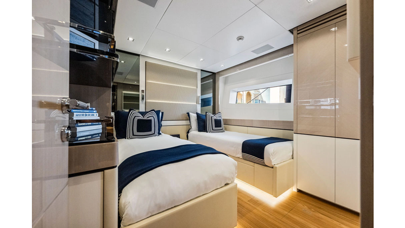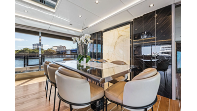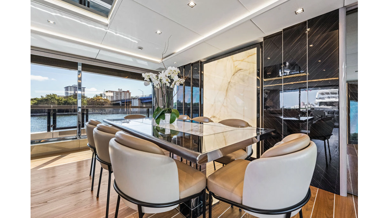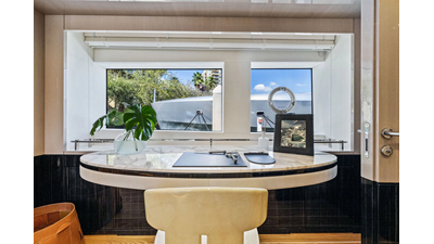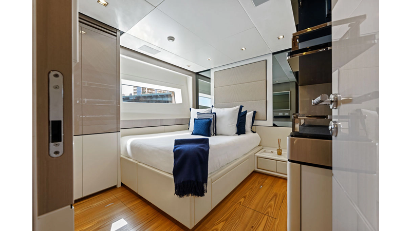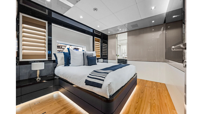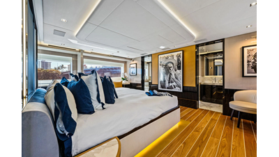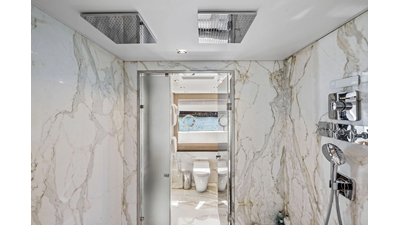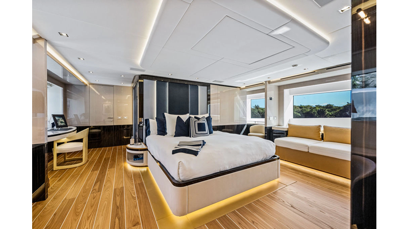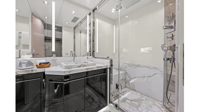 ARTEMIS, the 2021 Mangusta 33 GranSport, is one of the highest optioned 33 GranSports ever delivered. Originally commissioned as DOPAMINE for an experienced owner, she has well over €1m worth of upgrades including the beautiful interior decor by Alberto Mancini with upgraded marble & onyx throughout, upgraded galley, the master cabin that was completely reconfigured with a custom layout, increased ceiling heights both on the main & lower decks, as well as mechanical improvements such as increased sound proofing around the stabilizer systems to decrease noise in the guest accommodations.