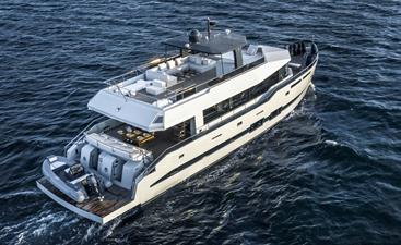 The 2019 SES Yachts 23M is a well-built semi-custom flybridge yacht designed for comfortable cruising and practical onboard living. Powered by twin CAT C12.9 engines (1000 HP each) with around 400 engine hours, she offers reliable performance and smooth handling.