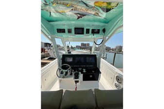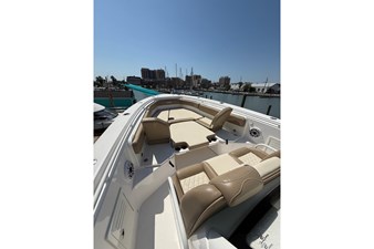 This 2021 Everglades 365 Center Console is an amazing fishing vessel in pristine condition, and she also has all the creature comforts for family cruising. Baby Seal is fully loaded with triple Yamaha 300hp engines, Yamaha Helm Master Joystick Control, Auto Pilot, and Three Touch Screen Garmin Displays. With 900hp she will cruise in mid to high 30's, and tops out around 60mph. There are three captain's chairs at the helm and a large custom hard top with three-sided enclosure. There are lounge seats and a cocktail table up front for the ladies, a large sunning area, and a spacious head with sink and a sleeping berth. If you only have fishermen aboard, the forward cushions are removable for extra fishing space. Key features include: