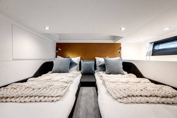 The interior was designed with maximum onboard comfort in mind- two cabins can accomodate up to 4 guests and is designed for weekending and dayboating.
