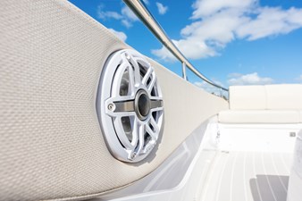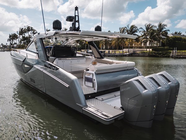 Azimut designed this model specifically for the triple Mercury Verado 600's, which are quiet and efficicent motors that allow the Verve to reach speeds of almost 50 MPH.