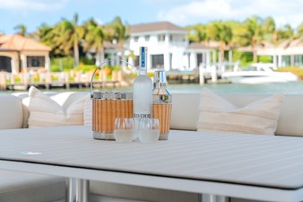 The unique hull design features a fold-out terrace to port, making the main deck excellent for entertaining large groups.