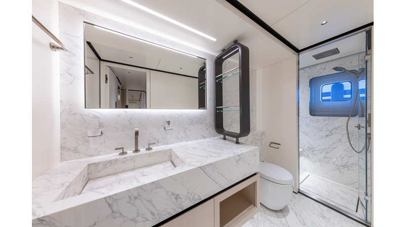 She sleeps 10 guests in 5 staterooms including a spacious main deck master. At 299GRT she is a large volume 35m but extremely capable and purposely built for blue water cruising.