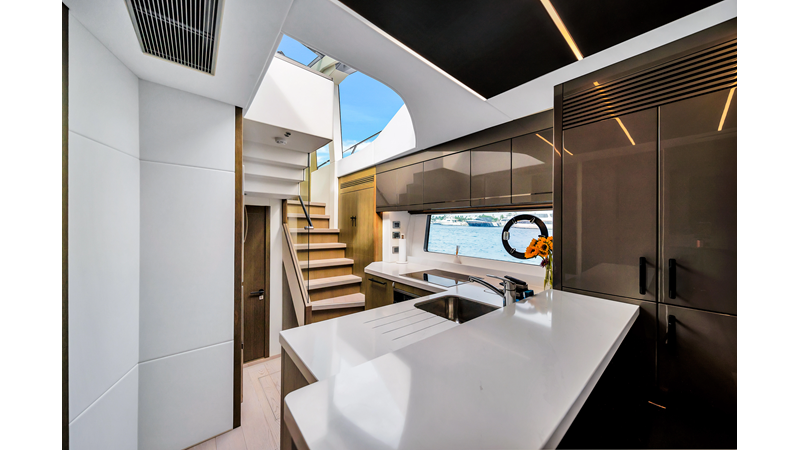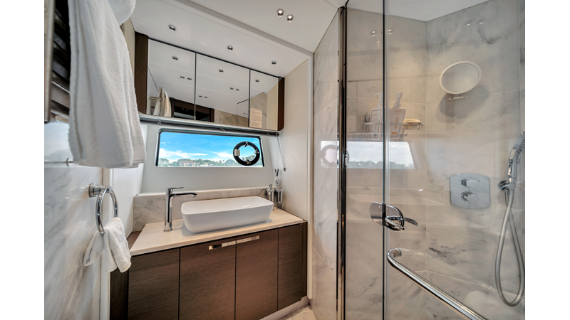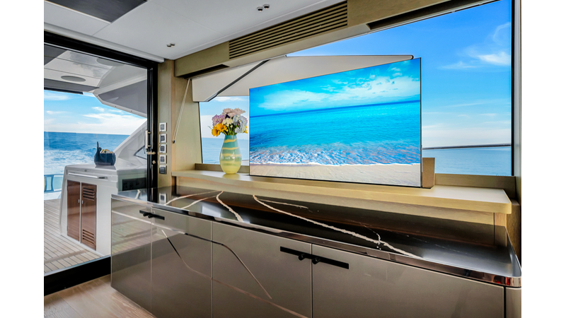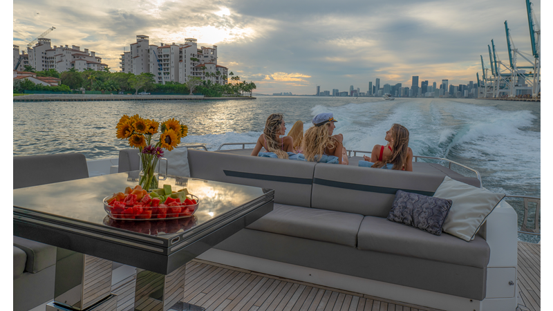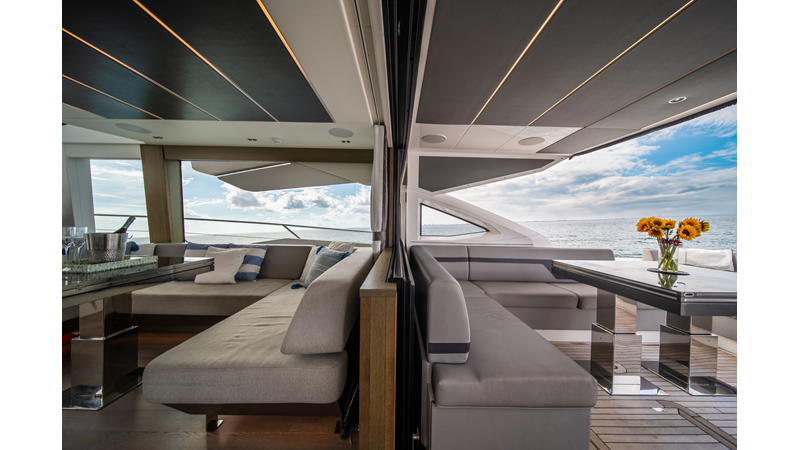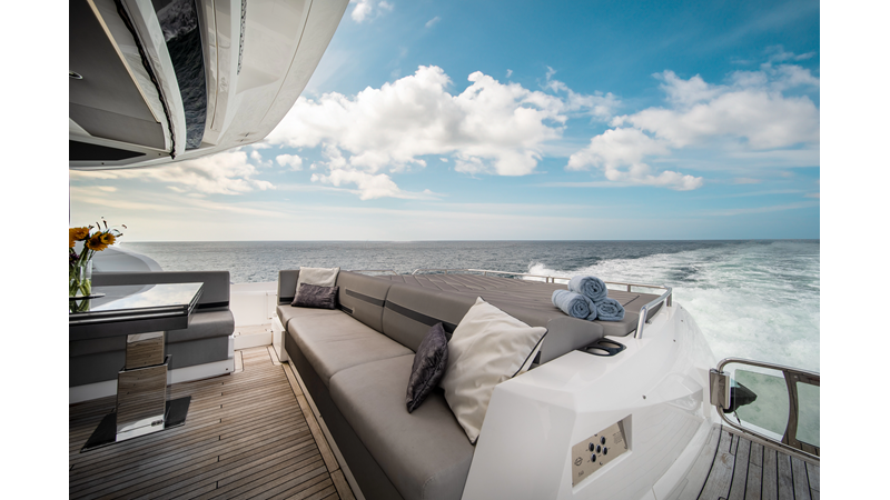 The ultimate Yacht with plenty of space on the Aft Cockpit to entertain family and friends and large Garage and Hydraulic Platform for Tender or Jetskis.