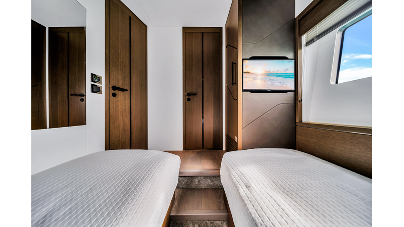 - While at Anchor or at Sea she has Sleipner Fin Stabilizers for extra comfort and Aft Docking Station for easy maneuvering.