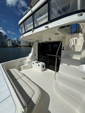 Flybridge with hardtop, seating for 8+, and built-in wet bar