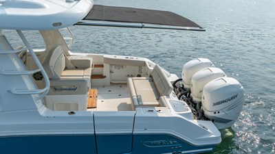 BLUE SKIES, a 2019 Boston Whaler 350 Realm, is the ultimate all-in-one adventure boat—ideal for families, serious anglers, and weekend explorers alike. Powered by triple 350hp Mercury Verado outboards with joystick piloting, she delivers smooth, responsive handling and offshore-ready performance. The versatile layout suits everything from fishing and cruising to sandbar days with the kids. Anglers will appreciate the cockpit with rod holders, prep station, and livewell, while comfort features include an air-conditioned helm, cozy cabin, shaded lounge, premium audio, and a hardtop with retractable sunshade. Whaler’s legendary unsinkable hull ensures confidence on every journey, from offshore runs to sunset cruises.