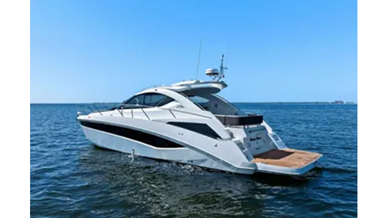 Step aboard this stunning 2017 Galeon 385 HTS, a semi-enclosed sport yacht built for both performance and comfort. With its sleek lines, full glass sunroof, sweeping hull-length windows and thoughtful layout, this model strikes the perfect balance between elegance and function. This boat is actually 44' LOA and equipped with Volvo Penta D6 inboard engines and stern drives.