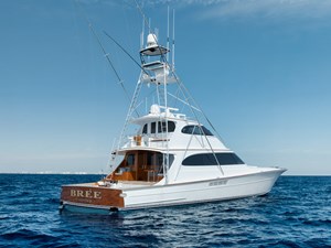 The Bree is a 86 foot Merritt enclosed flybridge boat that seamlessly blends the luxury of a yacht with the capabilities of a top-tier tournament fishing vessel. The enclosure provides a comfortable space for owners and guests to enjoy the bridge while staying protected from the elements. Even in challenging seas, the Bree ensures a smooth, stable ride, courtesy of its Seakeeper gyrostabilizer. Equipped with efficient Caterpillar C32A engines and a substantial 3,300-gallon fuel tank, this boat is built for long journeys without excessive fuel consumption. Competing in billfish tournament series around the globe, it boasts cutting-edge electronics and advanced gear, including Omni sonar, to optimize fishing success.