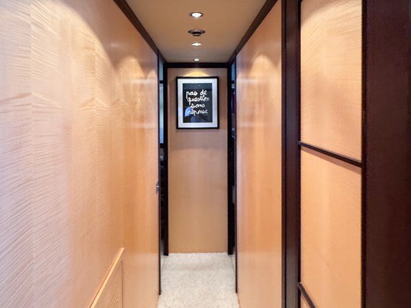 Inside, the yacht reveals a warm and inviting atmosphere, thanks to the use of fine woods and luxurious, earthy materials. The interior is not only stylish, but also cleverly arranged, with generous volumes that are expertly optimized to enhance the onboard experience.