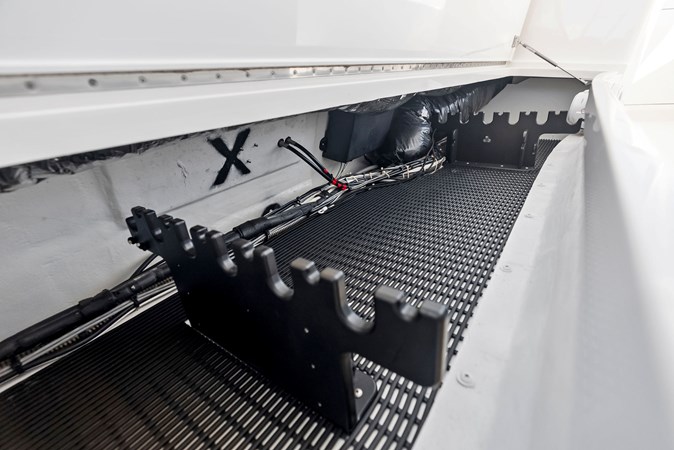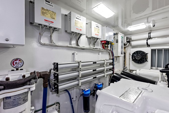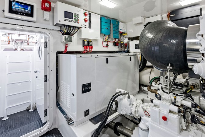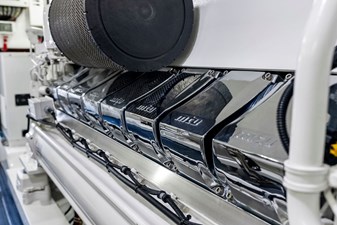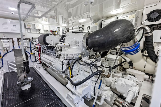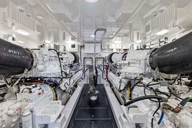 Powered by 2,635-horsepower Tier 3 MTU Series 2000 V16 M96Ls that comfortably abide in an immaculate engine room with a full 7 feet of headroom, this boat soars.
