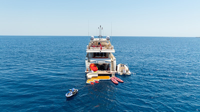 She is equipped with a custom Antudo 23 tender, a jetski, and a variety of other water toys. Powered by 2 × MTU 16V 2000 M91 engines, with major work completed in 2023, she delivers reliable and efficient performance. Fin stabilizers operate both underway and at zero-speed.