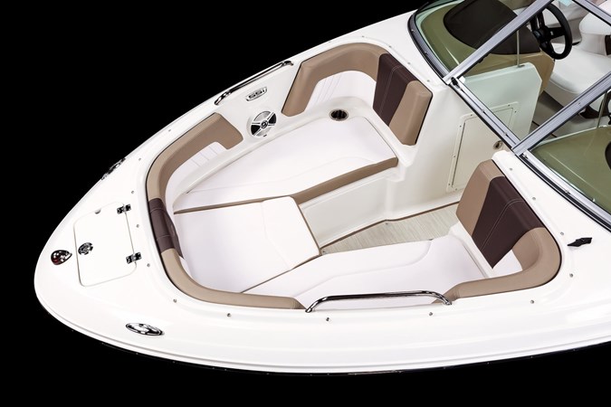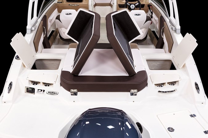 The 2025 Chaparral 21 SSi is a versatile 21-foot bowrider designed to deliver both performance and comfort for family outings and watersports. It features a beam of 8'4", providing a stable and smooth ride. The boat is powered by a Yamaha F200XC 200 HP FourStroke outboard engine, ensuring efficient fuel economy and reliable performance. Standard features include a 40-gallon fuel tank, a 70-quart built-in cooler under the rear bench seat, and a full-height windshield with stainless steel supports. The cockpit layout includes two ultra-comfort helm seats with flip-up bolsters, a rear bench seat, and an aft sundeck with a walk-thru and lounge position. With a maximum passenger capacity of 12 and a dry weight of 2,900 lbs, the 21 SSi is well-suited for those seeking a stylish and functional boat for both cruising and watersports.