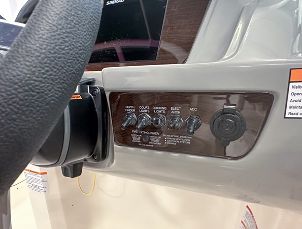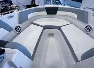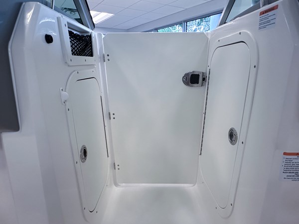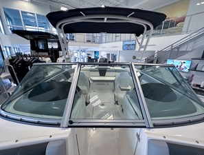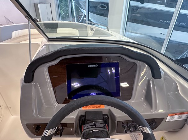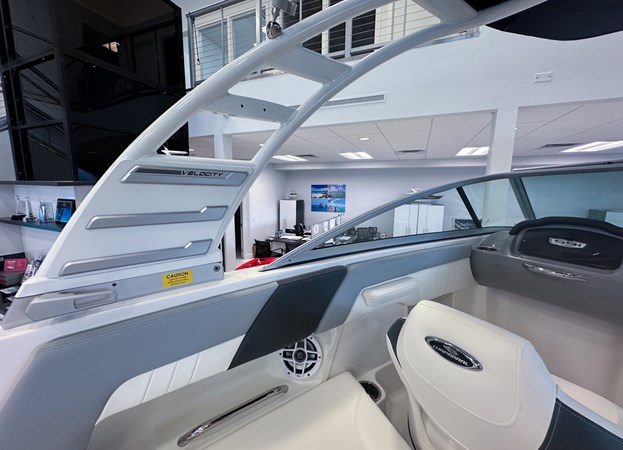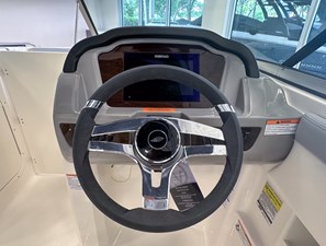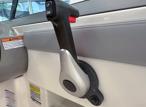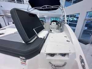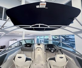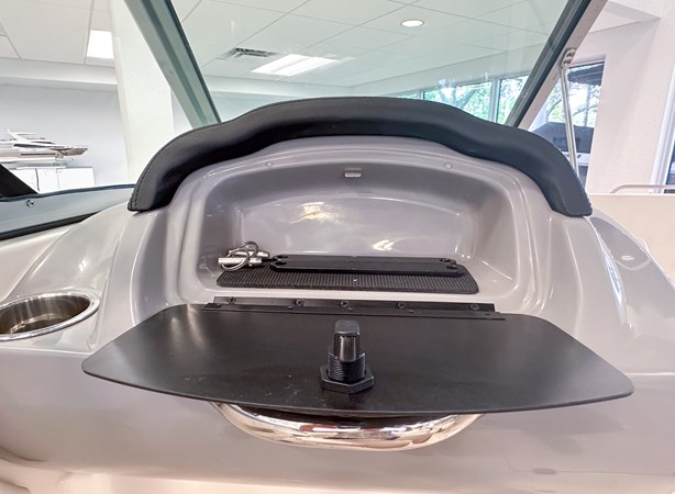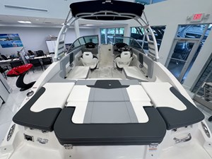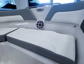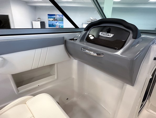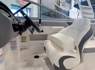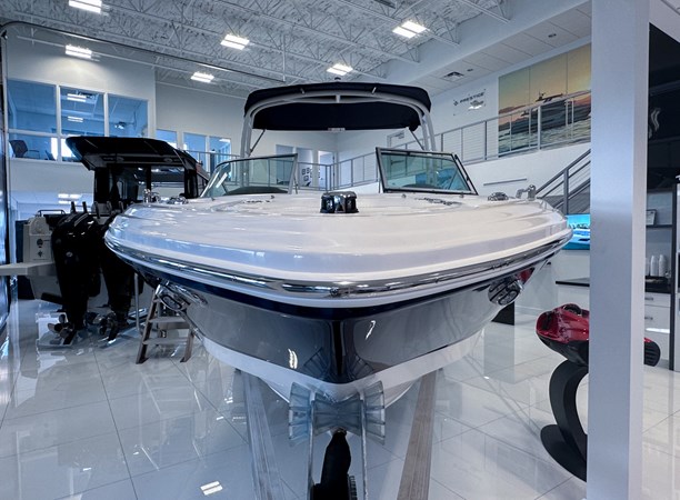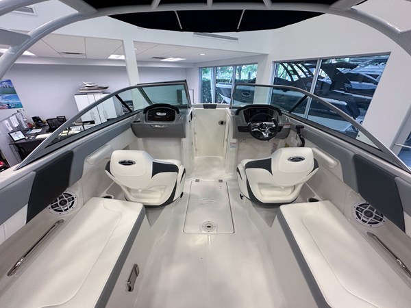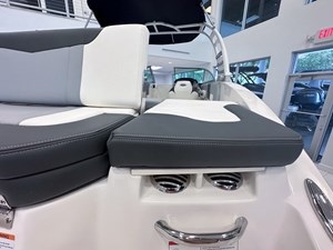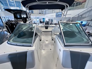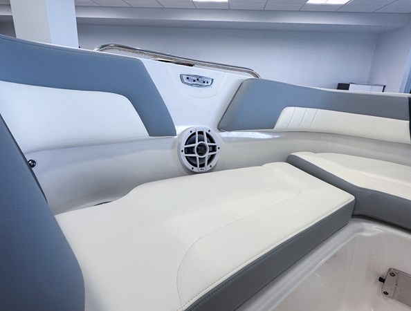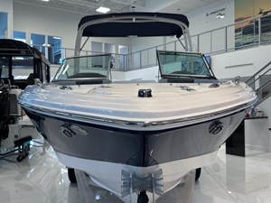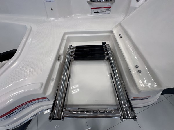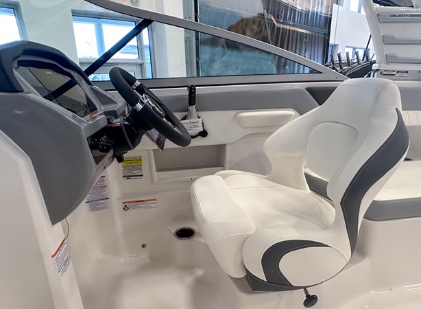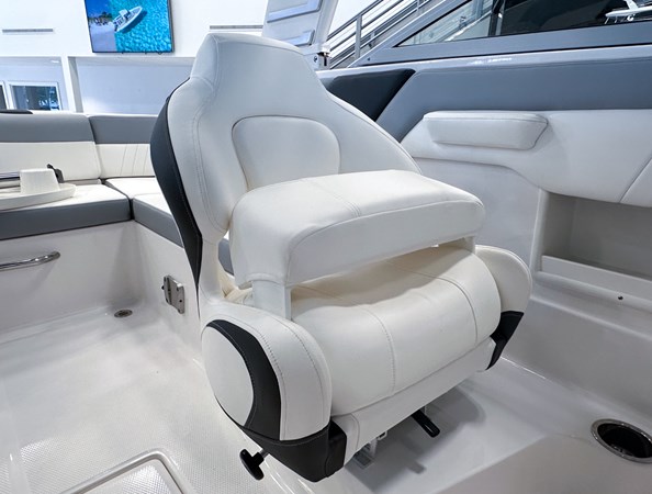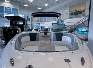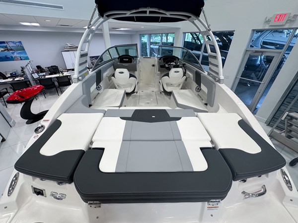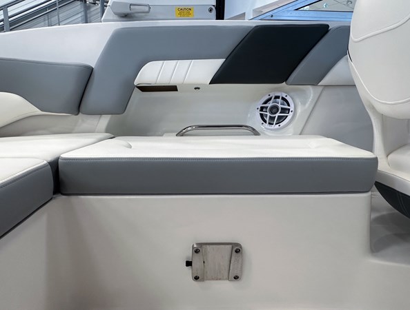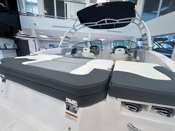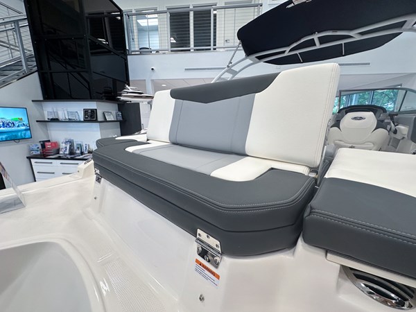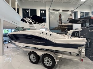 The 2024 Chaparral 23 SSi OB is a versatile and stylish 23-foot bowrider designed for both performance and comfort on the water. With a beam of 8'6" and a dry weight of approximately 3,400 lbs, it offers ample space and stability for up to 13 passengers. The boat is powered by a single Yamaha F200XC 250 HP four-stroke outboard engine, ensuring quick planing and efficient cruising. Standard features include a 56-gallon fuel tank, a 70-quart built-in cooler under the rear bench seat, and a cockpit drainage system (CDS). The cockpit layout boasts two ultra-comfortable bucket seats with flip-up bolsters, U-shaped seating, and an aft hinged sundeck with walk-thru and lounge position.
