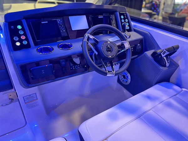 The 2025 Chaparral 280 OSX is a luxurious 30'6" bowrider that combines cutting-edge technology with elegant design, making it ideal for both day cruising and weekend getaways. Powered by twin Yamaha F250XSB2 4-stroke outboard engines, it delivers a total of 500 horsepower, ensuring impressive performance and maneuverability. The boat features a spacious cockpit with a double-wide bowrider seat, a convertible aft lounge, and a dynamic helm seat that rotates to create an open cockpit atmosphere for entertaining. Inside, the cabin boasts a full fiberglass head compartment with an electric toilet, starboard-side bench seating, and teak flooring, providing comfort and convenience. Advanced technology includes dual Simrad 7" multi-touch displays, a premium stereo system with Bluetooth connectivity, and a wireless charging dock.With a beam of 9'0" and a weight of 6,500 lbs, it accommodates up to 12 passengers comfortably. Whether you're seeking performance, comfort, or style, the Chaparral 280 OSX delivers an exceptional boating experience.