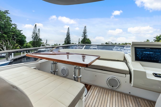 Measuring 74 feet 3 inches in overall length, Class Dismissed boasts a 18 feet 4 inches beam, providing ample room for luxurious living. The yacht’s main deck is thoughtfully designed with an open-plan layout, featuring a seamless connection between the salon, dining area, and galley, all illuminated by panoramic windows that flood the space with natural light. Plush furnishings, high-end materials, and meticulous attention to detail create an ambiance of refined sophistication. The aft cockpit, with its comfortable seating and dining space, extends the indoor-outdoor experience, making it an ideal setting for alfresco meals and social gatherings.