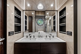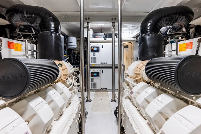 Powered by twin MAN V12 engines, each delivering 1,400 horsepower, allowing the yacht to reach a top speed of approximately 32 knots and a cruising speed of around 26 knots. Advanced technology, including the latest navigation systems and joystick controls, ensures precise maneuverability, making it easy to handle despite its size. The vessel is also equipped with Seakeeper 16 gyro stabilizer, which significantly reduce roll motion, enhancing onboard comfort both at anchor and underway.