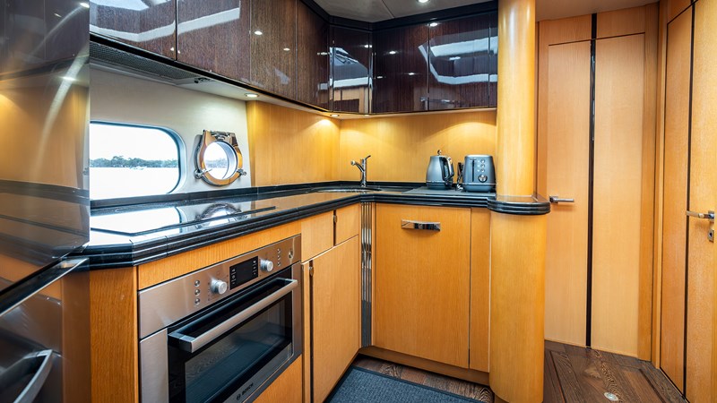 Sleeping six across three cabins, including a full-beam master suite, VIP forward cabin, and twin guest cabin, she’s perfect for family or entertaining. The flybridge with BBQ and bow sunpads offers stunning outdoor living.