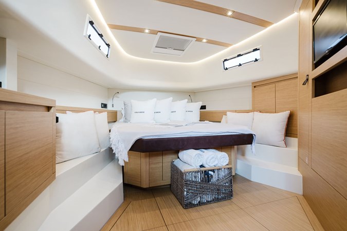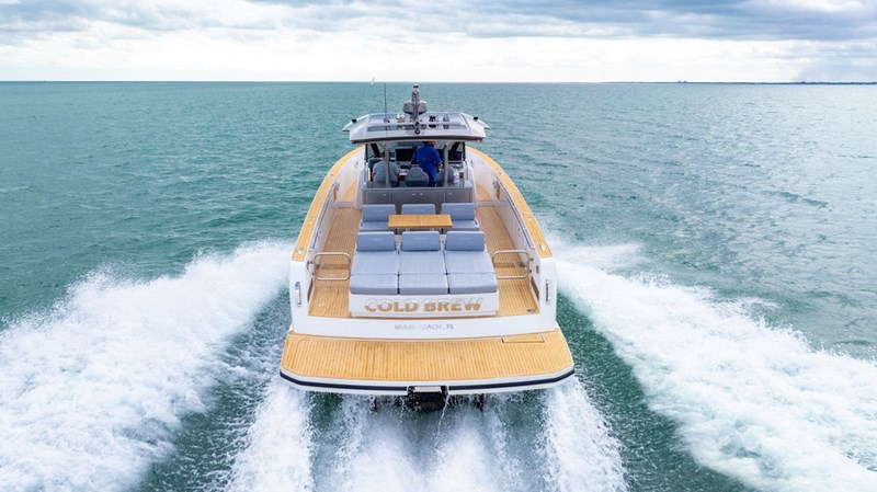 COLD BREW is a striking blend of luxury and performance, featuring sleek, contemporary Italian design. Launched in 2022 by Pardo Yachts, she is powered by twin Volvo IPS 650 engines, delivering maneuverability and impressive speeds up to 38 knots, ensuring a smooth and exhilarating ride. The spacious interior includes a well-appointed cabin with modern amenities, a fully equipped galley, and is spec’d to the highest standards. She features many upgrades including a custom Pagani paint scheme with new cushions, upgraded stabilizer, FLIR camera, electric bimini, and aft shower on the swim platform. Ideal for both day trips and extended voyages, the Pardo 43' COLD BREW is the perfect balance between elegance and functionality.