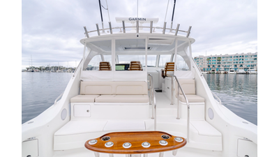 Powered by robust Volvo D13 engines paired with ZF transmissions, straight shafts, and 4-blade props, she delivers exceptional performance. The transferrable Volvo extended warranty ensures peace of mind for her next owner. Fully equipped with brand-new, top-tier fishing gear included in the sale, COMMODORE TWO is a fisherman’s dream.