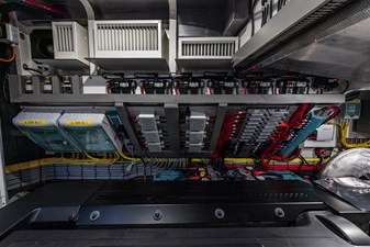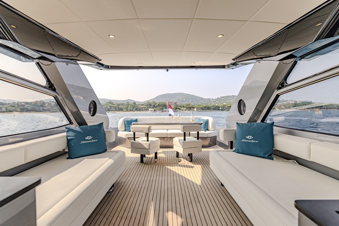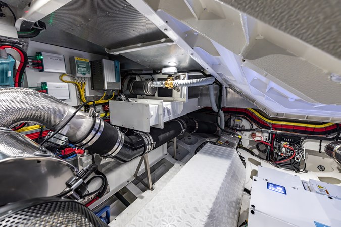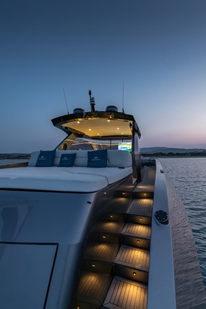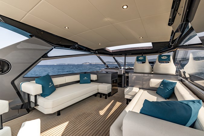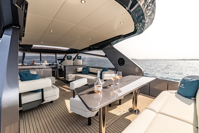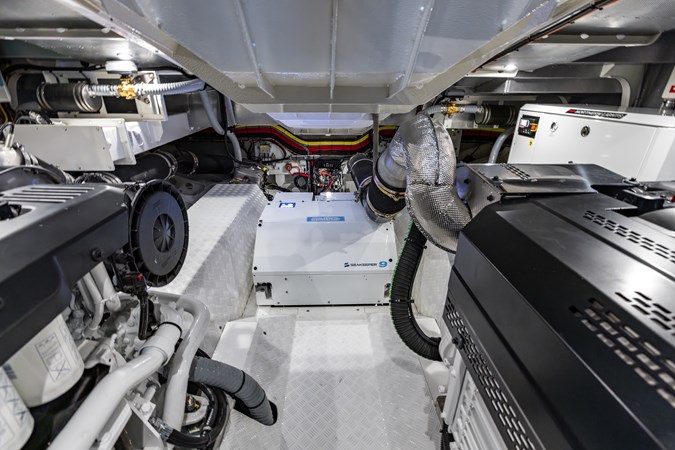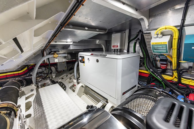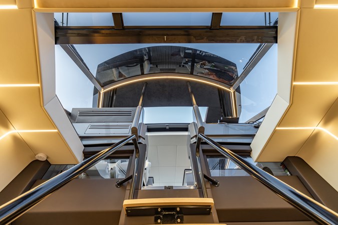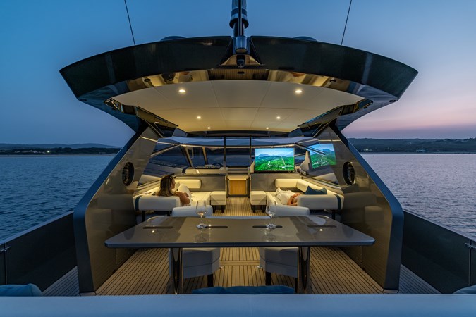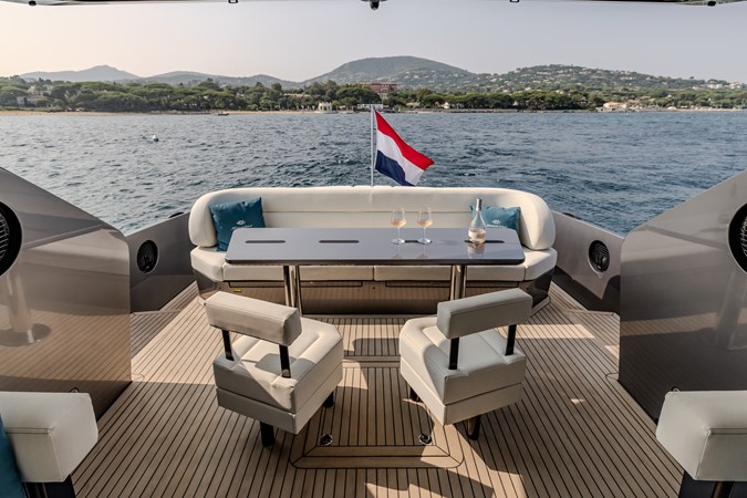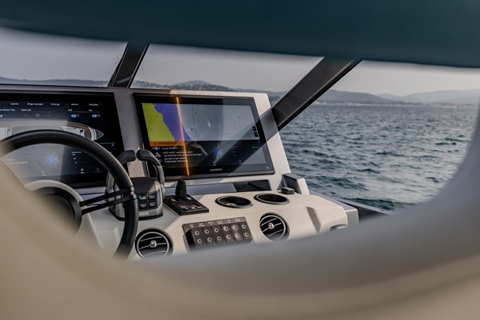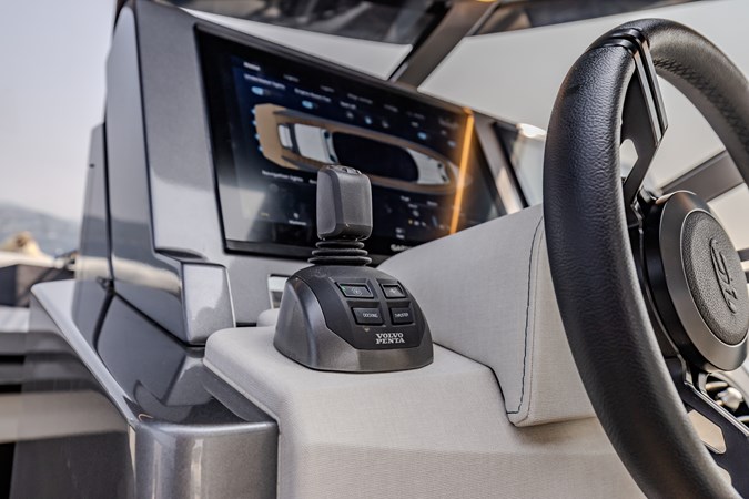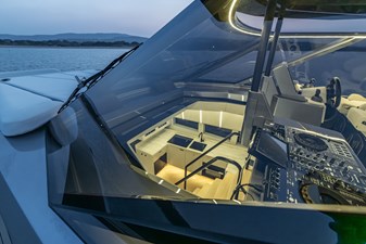Power & Stability: Equipped with Twin Volvo Penta IPS 1350 engines, it hits a blistering top speed of 35.5 knots. To keep things smooth at anchor or at sea, it’s fitted with a Seakeeper 9 gyroscopic stabilizer.