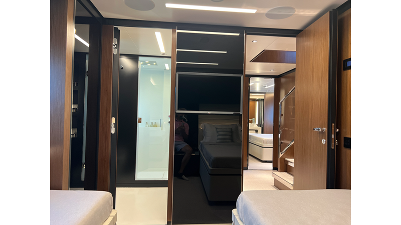 Riva 102 Corsaro Super – The Riva 102 Corsaro Super represents the pinnacle of Italian yacht craftsmanship, blending sleek design, powerful performance, and unmatched luxury. With only 81 hours on her upgraded MTU engines, this yacht is practically brand new, meticulously maintained by a professional crew. Every surface gleams, every system functions flawlessly, and every detail showcases Riva’s legendary attention to elegance and quality. Designed for owners who value style, comfort, and thrilling experiences on the water, she offers expansive spaces, refined interiors, and sophisticated outdoor areas perfect for entertaining or relaxing in absolute luxury.