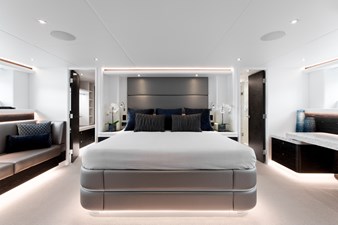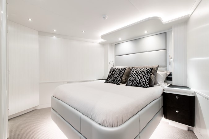CRESCENT LADY accommodates up to 10 guests in five beautifully appointed staterooms. The full-beam master suite includes a king-size bed, generous wardrobe, and an ensuite bath with a Jacuzzi tub. Additional accommodations include two king VIP staterooms and two double staterooms with single beds, each with its own ensuite. Crew quarters provide comfortable accommodations for 5 in three cabins.